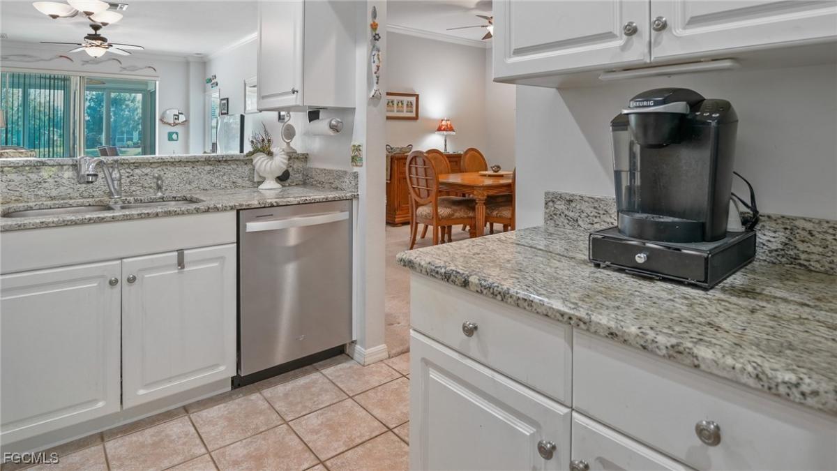 Do not miss this best priced Villa in the South Fort Myers area. Heritage Cove is a 55+ gated community with a massive clubhouse, sparkling pool, tennis courts, and more located close to both beaches and shopping. This fully furnished/turkey home features a flexible floor plan with a room that can be a formal dining room or den. Tropical foliage greets you as you make your way to the screened front entry with electric hurricane screen & impact slider to breakfast nook. Step into the foyer and to the left you will find the breakfast nook, pantry, and granite kitchen with new appliances still under warranty. To the right is the generously sized guest bedroom, bath with grab bars & granite, & interior laundry. Just beyond the laundry hall is the flexible den/dining room. Straight through is the sunny open living area featuring a granite bar and opening to the Florida room enclosed with impact sliders, which is accessible via the living room or primary bedroom. Beyond the Florida room is an open patio ready for you to soak up that Florida sunshine. The ensuite primary with sunny bay windows looks out over the lovely pond and offers a large WIC and shelved closet, as well as linen closet in the bath that boasts a tile shower and granite vanity. The oversized single car garage has a wall of built-in cabinets and lots of shelving to keep everything tidy. All of the infrastructure has been updated, hot water heater, HVAC & ductwork, kitchen appliances, and impact windows & doors are all recent updates. Information is believed to be accurate but always perform your own due diligence.