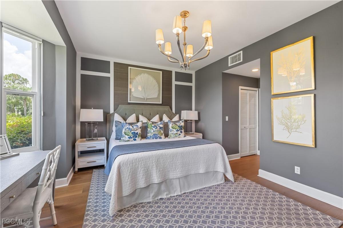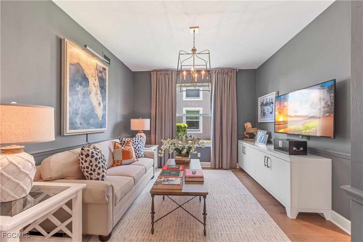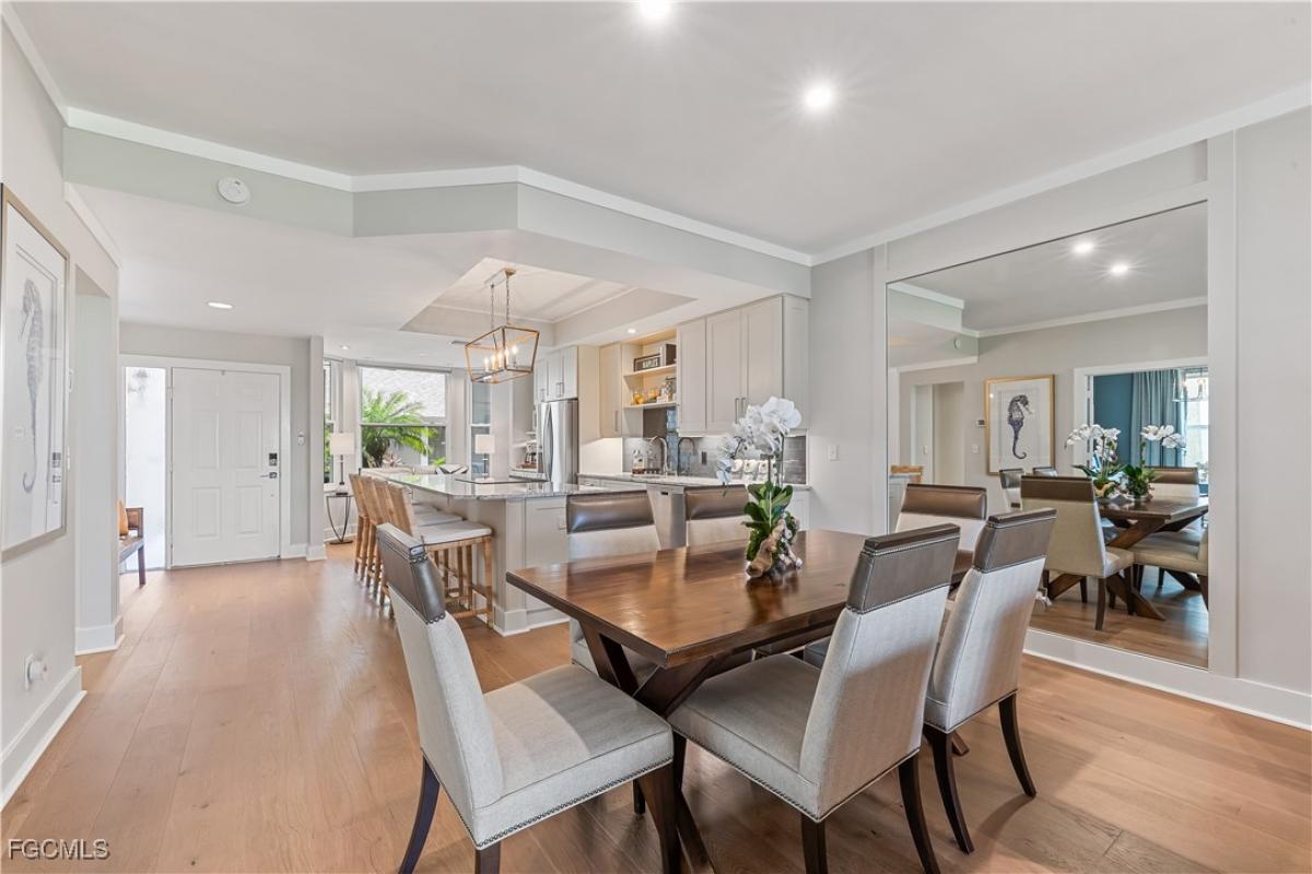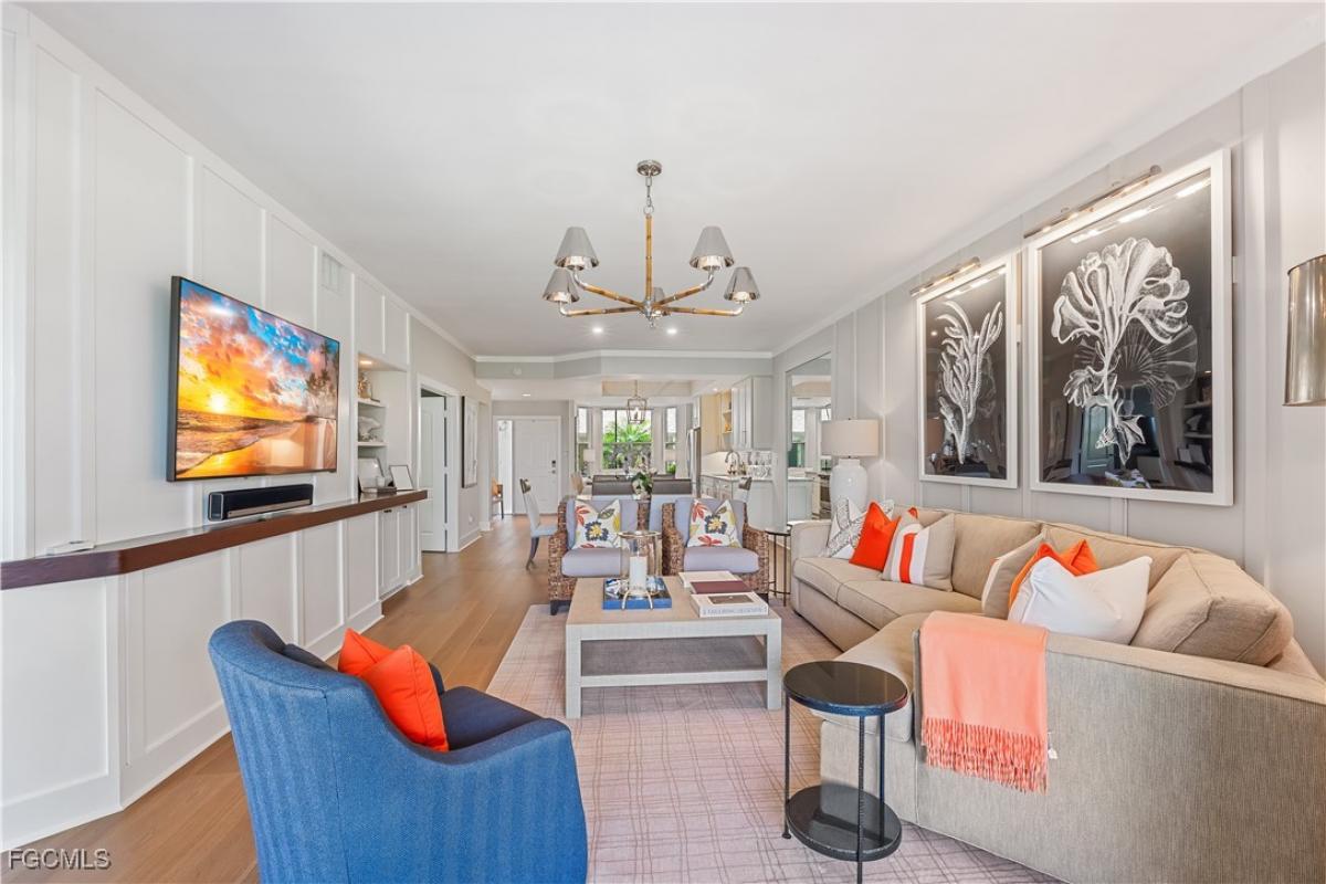 Welcome to an enclave of luxury living at Olde Hickory Golf & Country Club. A prestigious bundled golf community offering not just a home, but a lifestyle. Step into elegance and sophistication with this extensively renovated, TURNKEY 2-bedroom + den, 2-bath veranda showcasing meticulously selected materials that redefine modern living. End unit with expansive views of the golf course situated on #1. The open floorplan is light andbright with a wall of windows and doors facing the golf course. The spacious kitchen offers center island, breakfast bar and breakfast nook overlooking the front lanai with stainless appliances and granite counter tops. The elegant primary bedroom has sliding glass doors out to the back lanai with a gorgeous view of the golf course. Not only has the home been fully renovated but also boasts new hurricane rated windows (2024), new roof (2024), hurricane shutters, hardwood flooring throughout and a Sonos Sound System. Enjoy the Florida lifestyle with this BUNDLED Golf community and a wealth of amenities, including pickleball, tennis courts, a resort-style pool, restaurant, bar and an exercise room. Located with easy access to I-75 and Daniels Corridor, minutes from beaches, baseball parks, and more. Olde Hickory, a place where every day feels like a vacation! Welcome home!