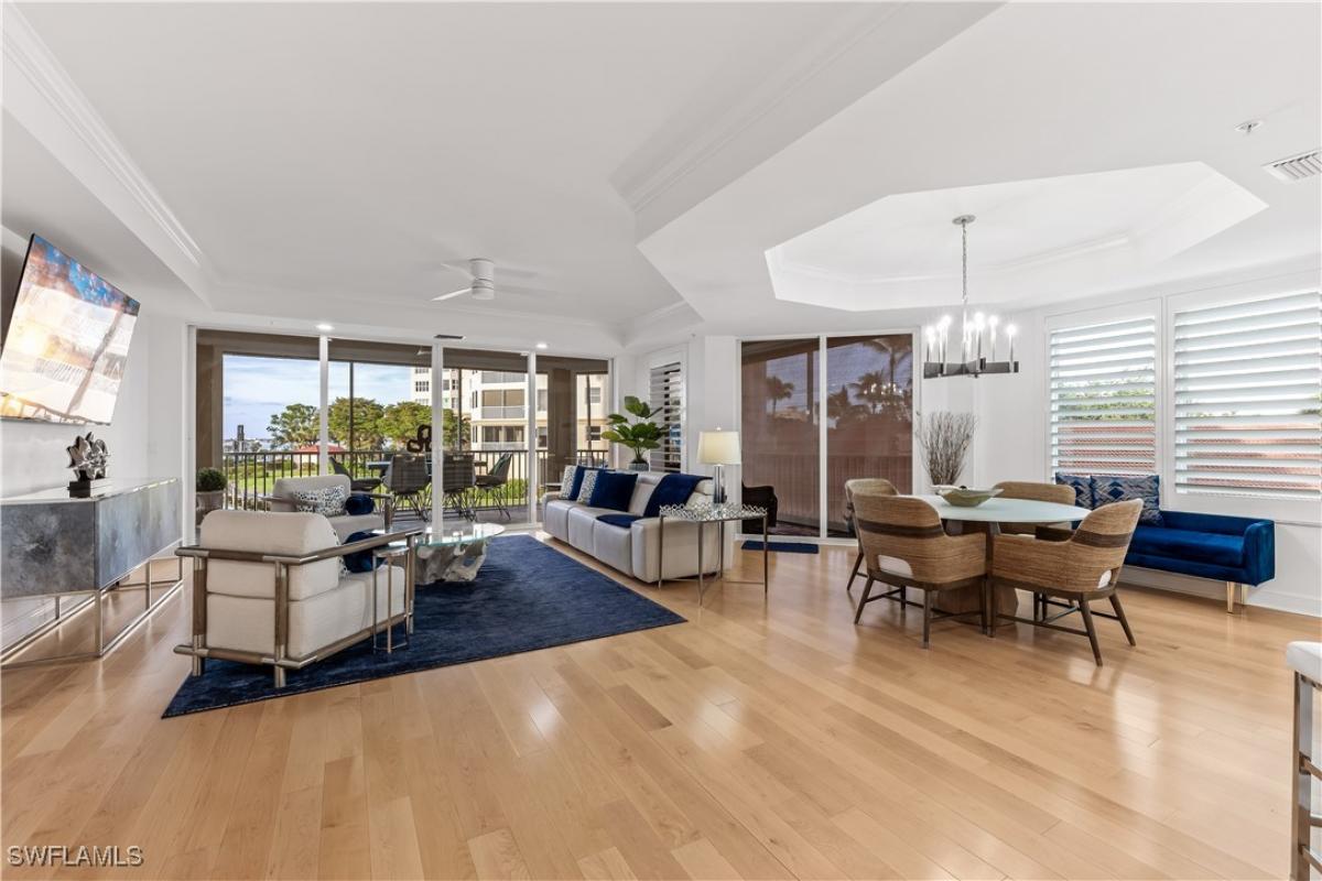 RIVERFRONT LUXURY WITH EXCLUSIVE BOATER'S ACCESS - This newly renovated condo provides a rare combination of luxurious living and immediate access to your aquatic adventures. Perched in a meticulously maintained, low-density building, this stylish condo boasts stunning river and marina views. Enjoy leisurely strolls along the private island and marina, all within a gated, secure environment offering the exclusivity of just two residences per floor with direct elevator access. Spanning over 2,440 square feet, the interior features three ensuite bedrooms, a spacious screened lanai, and two open lanais -- perfect for enjoying the captivating vistas. The chef-inspired kitchen is appointed with custom cabinetry, stone countertops, top-tier appliances, and wine refrigeration. Premium finishes elevate every space, from engineered wood flooring and designer lighting fixtures to high-impact windows and Storm Smart electric hurricane screens.Recent building upgrades include a new roof and a Generac generator for ultimate peace of mind. This turnkey offering includes gorgeous Robb & Stucky furniture, making it truly move-in ready. Additional conveniences include a detached one-car garage, a deeded under-building parking spot, two storage rooms, a large community pool, exercise room, tennis/pickleball courts, and newly restored fishing pier. Private 50' x 18' dock with water, electricity, and ice machine is also available for separate purchase. The HOA fees cover everything except personal interior insurance and electricity. Embrace the ultimate Florida lifestyle. Explore the virtual tour and schedule your private viewing of this extraordinary property.