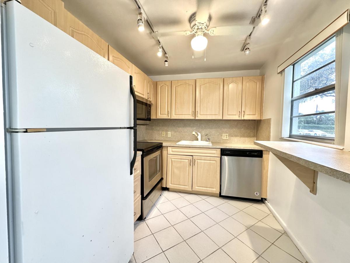 Investor Friendly Condo. Bright corner unit, 2 Bedrooms and 1.5 Bathrooms in Century Village, an Active +55 Adult Community. Located on the 1st floor in Fanshaw E section. Central AC, Kitchen cabinets and counters had been updated in recent years. Ceramic Tile floors throughout except carpet in bedrooms. Monthly dues cover both associations and include Internet, basic cable, water in addition to Century Village amenities which include an active clubhouse, fitness center, social activities, and performance theater. Swimming pool, tennis, game courts, shuffleboard, card room and more