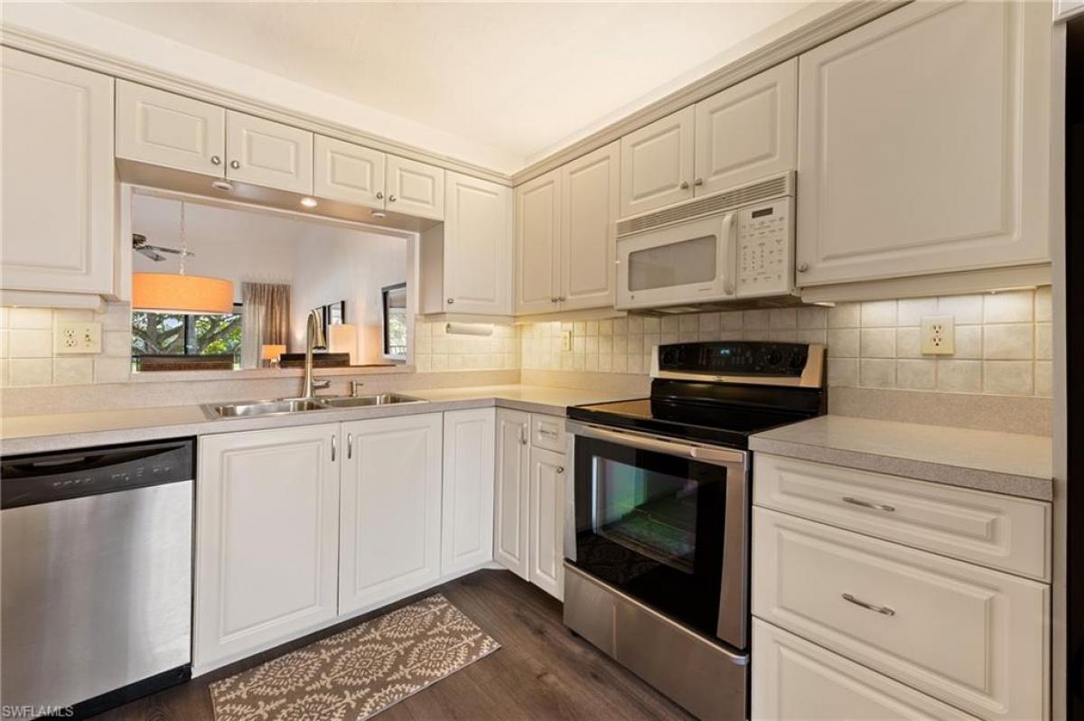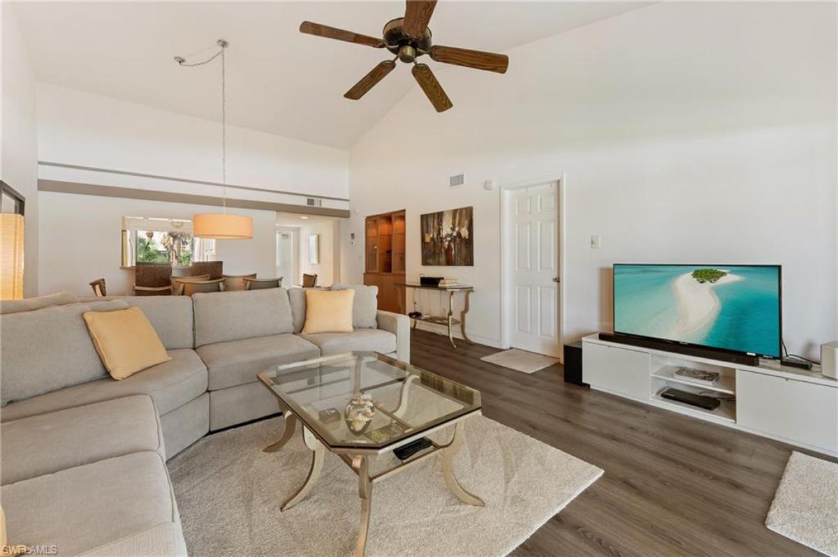 Beautiful expansive lake views from this second floor, 2 bedroom, 2 bath condominium in one of the best Kings Lake condo locations. Large updated kitchen with pass through to dining/living area, creating bright, open spaces. Stunning lake views from the large 210 sq. ft. lanai overlooking the lake, which also has a storage closet. Front entry has second smaller lanai. Lush, mature, well tended landscaping. People and pet friendly neighborhood with tennis courts, two attractive pool areas, pickleball, bike and jog path around lake. With shopping and restaurants within a short walking distance!. All this only 4 miles to downtown and Naples beaches!