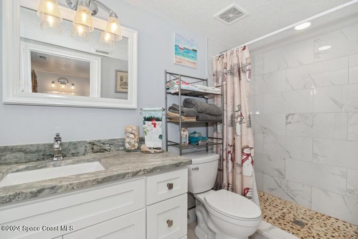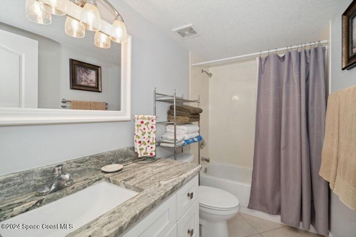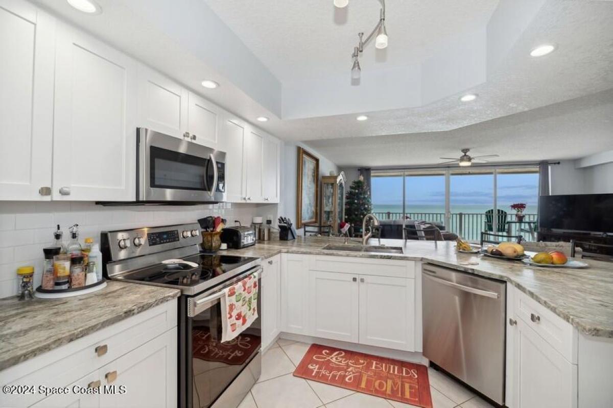 Wake up to panoramic ocean views and enjoy rocket launches from your private balcony in this fully redesigned 3rd-floor direct oceanfront condo at Lantana. This 3-bed, 2.5-bath residence with a flex room offers over 2,000 sq ft of elevated coastal living. The chef's kitchen boasts leathered granite countertops, custom cabinetry, and premium stainless appliances—all with endless ocean views. Thoughtful upgrades throughout include elegant flooring, bespoke cabinetry, and exquisite granite finishes. Enjoy private beach access, a heated pool, fresh exterior paint, restored balconies, and a 1-car detached garage with extra storage—all with NO assessments. This is oceanfront living at its finest!