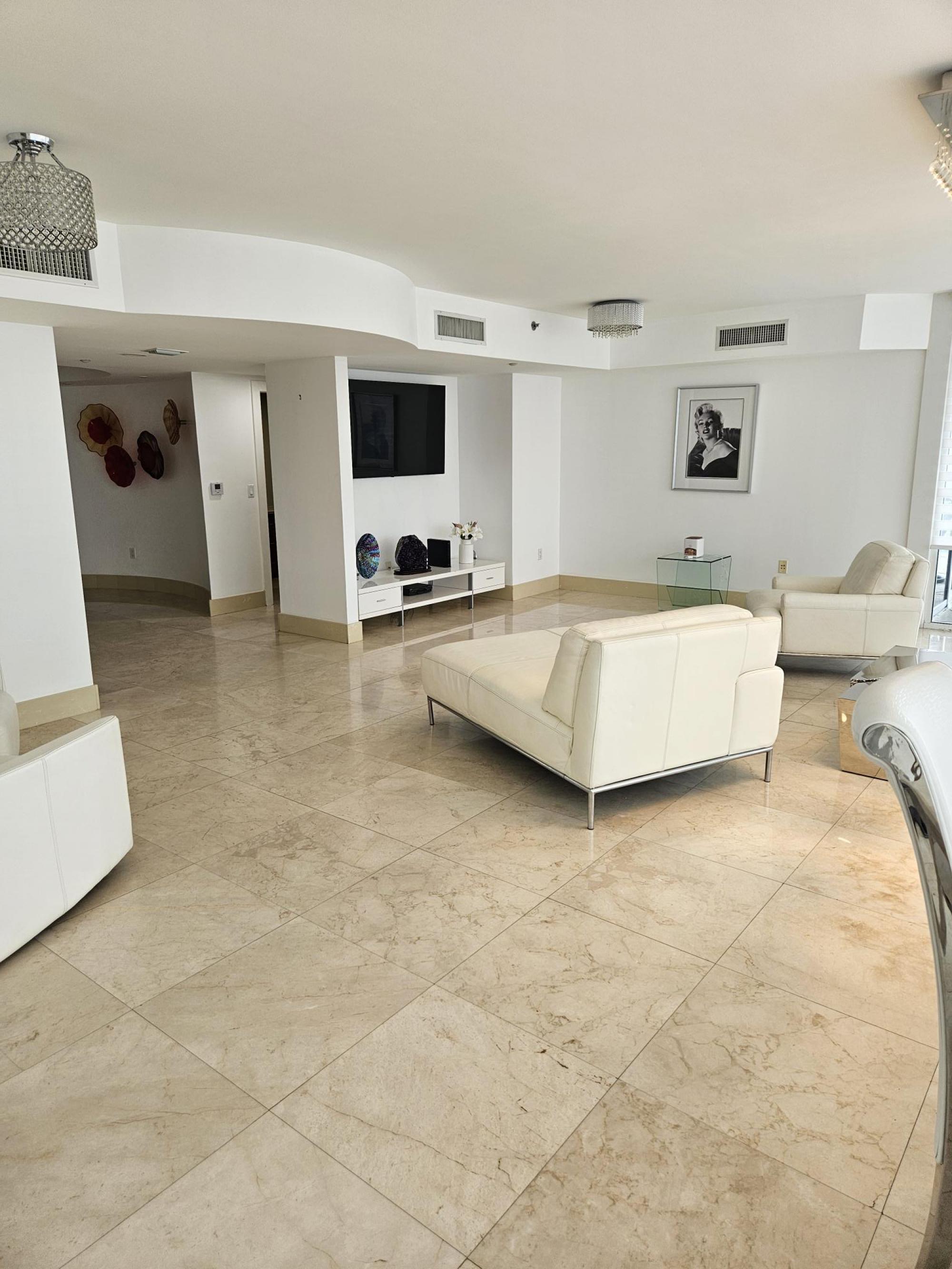 OCEAN FRONT-3 BED-31/2 BATH, PLUS MORE THAN 2000 SQ FT PRIVATE PATIO-ONLY UNIT IN BUILDING W/LG PATIO-SOUTH EAST OCEAN VIEWS-OPEN FLOOR PLAN-FURNISHED-10 FT CEILINGS-POOLS-TENNIS-PICKELBALL-GARAGE PARKING-XTRA SPOTS AVAILABLE & VALET-BEDROOMS ENSUITE-PRIVATE ELEVATOR TO UNIT-CLOSE TO AVENTURA-BAL HARBOUR-AIRORTS-GULFSTREAM-RESORT STYLE LIVING-CONCIERGES-PRIVATE BEACH ACCESS-SPA-CAFE-LEASED TILL JUNE 30, 2026- STRONG DEMAND IN AREA