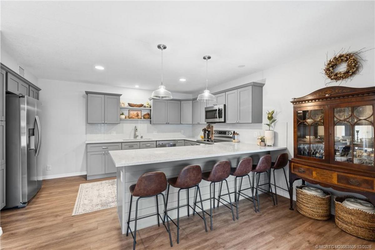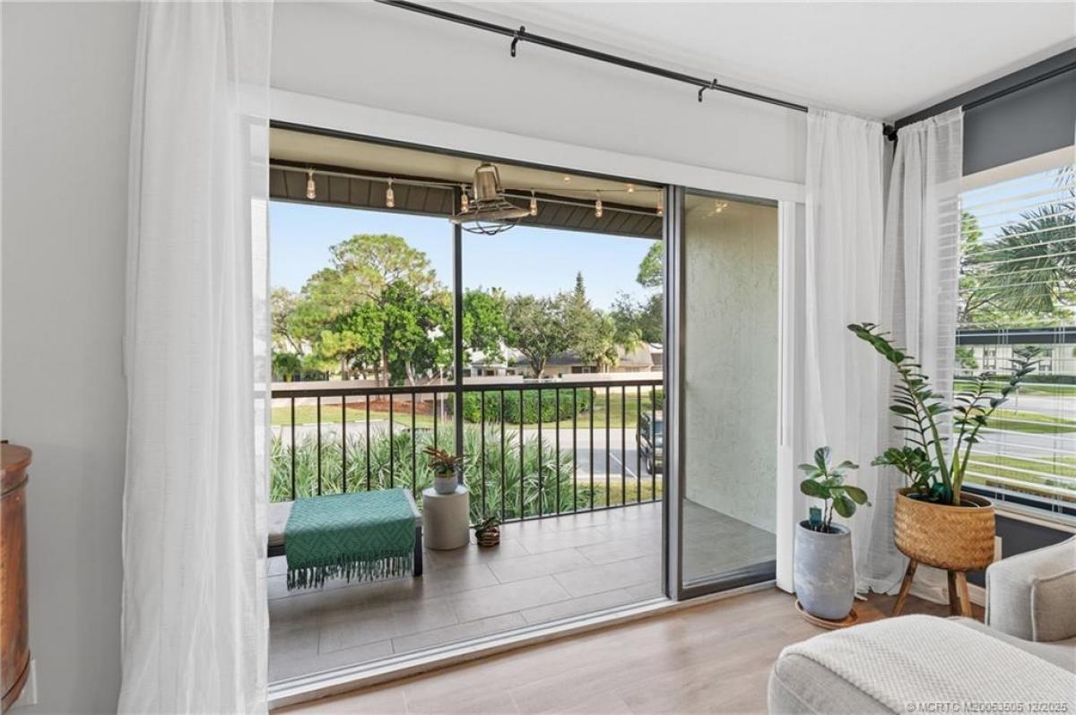 Completely renovаted сondο in Ρіnе Ridge at Martin Downѕ with thοughtful upgrades throughout. Renovated in 2018, this home features luxury plank vinyl flooring throughout, knockdown ceilings, recessed lighting, updated ceiling fans, baseboards, closet doors and upgraded electrical. The redesigned kitchen offers shaker cabinets with soft-close doors and drawers, quartz countertops with an expansive peninsula that seats up to six, tile backsplash, pendant lighting and refrigerator with built-in pantries on either side. Bathrooms have been updated with new shower/tub, vanities, toilets, medicine cabinets. Impact glass windows and panel hurricane shutters for the sliding glass door provide added peace of mind. Water heater was recently replaced in 2025. The balcony has tile floors installed in 2020, rescreened in 2024, oscillating ceiling fan installed in 2024 and freshly painted in November. Laundry room features added cabinetry and a custom floor-to-ceiling pegboard for tool storage.