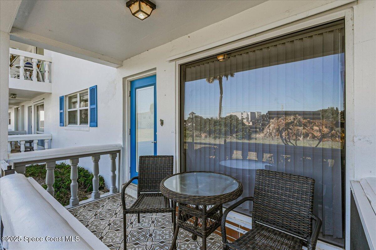 Adorable corner unit beachside condo just steps from the ocean! Fully furnished and move-in ready—perfect for a winter getaway or full-time residence. Remodeled kitchen with granite countertops and newer stainless steel appliances. Updated bath. New living room and bedroom furniture. Tile and laminate flooring throughout. Newer A/C and water heater. Enjoy cool evenings on the private outdoor patio. Assigned carport and storage unit located directly next to the condo. Laundry facility located next to unit. Community pool. Prime location close to shopping, dining, and entertainment.