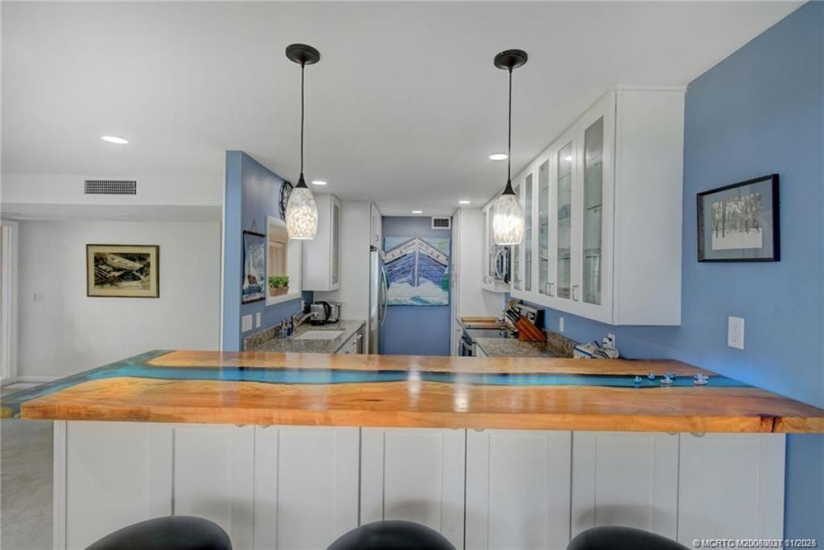 Waterfront furnished ground flοor 2/2 сondο. Comрlеtеly renovated. Loсatеd at Indian River Plantation on Hutchinson Island. Gorgeous panoramic views of the Indian River. Spectacular sunsets. River beach access for kayak lovers and fishing enthusiasts. Deeded beach access. Extended lanai enclosed w/sliders and screens. Custom gourmet kitchen, granite counter-tops, stainless steel appliances and cast iron sink. Double pantries w/ pull out drawers. Handcrafted Australian Acacia wood breakfast bar. 24 inch ceramic tiles throughout. Plantation shutters. New electrical. Recessed lighting. Full size stackable washer/dryer. Primary bedroom w/ walk-in shower, dual sinks and walk-in closet. Second bedroom/office w/ queen Murphy bed, Custom bars w/walnut counters. AC and Water Heater 2020. Heated community pool and tennis/pickle ball court. HOA fee includes Bldg Hurricane Insurance, Water, WIFI/Cable, pest control and trash. Ocean Club membership available. Welcome to your Coastal Dream Home.
