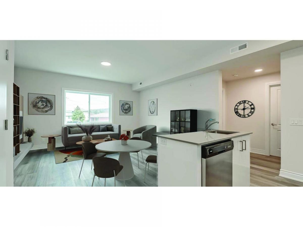 Be the first to live in this gorgeous 877 sq ft open concept, 2-bedroom 1 bath unit in Stoney Creek. Beautiful modern finishes include vinyl flooring, stainless steel appliances, quartz counter tops, high ceilings, and in suite laundry.