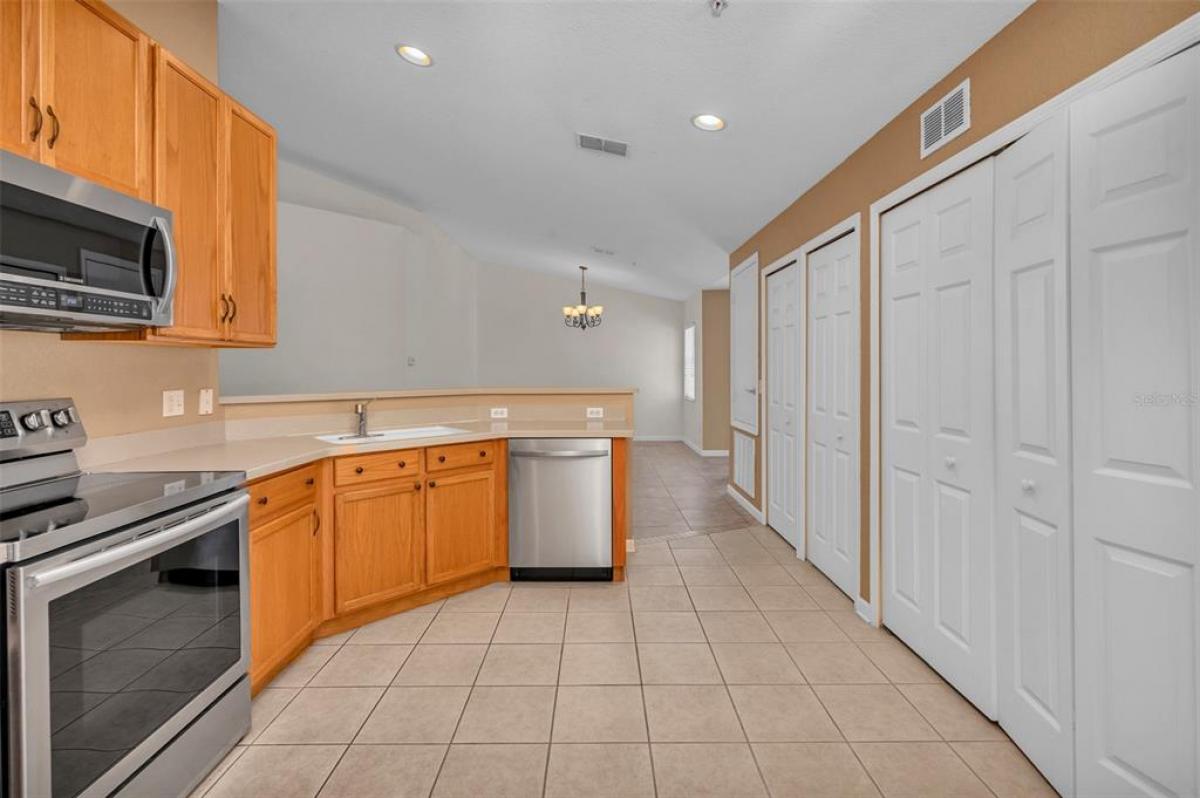 This beautifully kept 3-bedroom, 2-bath condo in the desirable Carriage Homes community is just three doors away from the resort-style clubhouse pool and amenities. It offers a wonderful combination of comfort, convenience, and peaceful living.Upon entering, you'll be welcomed by an open, airy floor plan with high ceilings that create a sense of space and brightness. Large windows throughout allow natural light in, creating an inviting atmosphere. The split-bedroom layout provides privacy for everyone, with the spacious primary bedroom featuring large windows that let in plenty of sunshine and showcase peaceful views of the tree-lined pond, these views can also be enjoyed from the screened and covered balcony. The adjoining bathroom includes a generous walk-in closet and double vanity sinks for added comfort.The main living areas, including the primary bedroom, are beautifully tiled in neutral colors, offering both elegance and easy maintenance. The kitchen is roomy and functional, with real wood cabinetry, ample counter space, and a large breakfast bar that opens into the formal dining area and Great Room, perfect for entertaining.Vaulted ceilings throughout the condo further enhance the sense of openness, making the home feel even more spacious. The one-car garage offers additional storage or a place to park your car, adding convenience to everyday life.Step outside, and just a few steps from the community's resort-style amenities. The clubhouse, expansive pool, and fully equipped fitness center, offering plenty of options for relaxation and recreation. The gated entrance adds extra peace of mind, ensuring security and privacy.This home is ideally located just minutes from shopping, dining, and major highways, Orlando, making it the perfect spot for those seeking a balance of peaceful living and easy access to everything you need.The condo has been meticulously cared for by the current owners, who have kept the home smoke-free and pet-free. It’s in excellent, move-in-ready condition, waiting for your personal touch.Priced to sell, this condo offers fantastic value in a highly desirable community. Don't miss out—schedule your showing today!