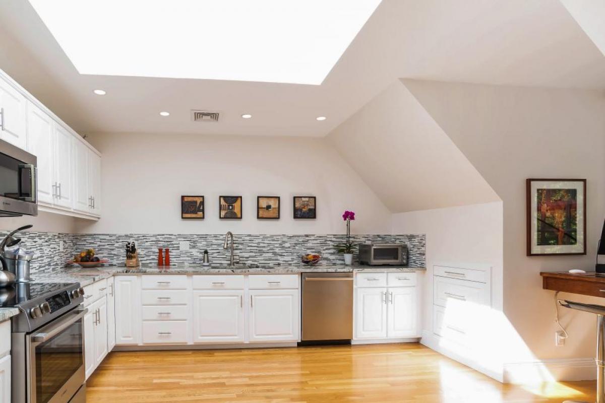 Perfect second home in in premium location. Fenway, Kenmore Square, close to MBTA C & D-Lines, Longwood medical area, Emerald Necklace Riverway and bike path. Penthouse Luxury Condominium in beautiful mansion, with classic Boston charm. Glass encased foyer with column and curved staircase to main level. Living areas has eight arches allowing for light and interesting line of vision in every direction. Sun-drenched kitchen with new high-end Bosch kitchen appliances, granite counter and custom cherry bar, computer station. Three unique fireplaces, skylights and stained glass add to the beauty of the home. Master bedroom with dressing room / walk-in closet, en suite featuring double sinks, whirlpool tub, plus standing shower. Second bedroom features access to outdoor space, en suite bath, and built-in book cases. Exclusive use of roof deck, with unobstructed treetop views. Peaceful home in an area known for excellent schools, top notch Universities, booming pharma and tech industries, and famous hospitals.