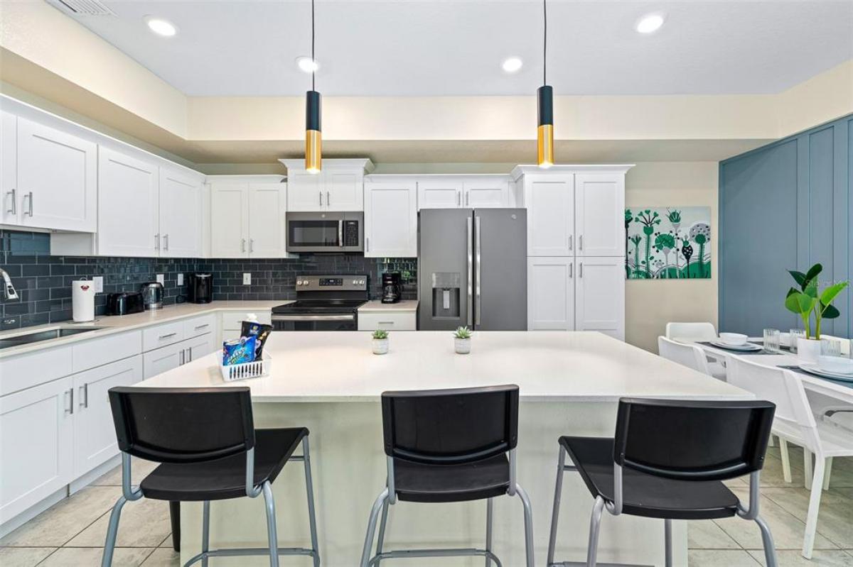 Welcome to this beautiful 3 bedroom / 2 bathroom fully furnished condo in Storey Lake near Disney! Located on the fourth floor with easy elevator access! Perfect for short term rentals or to have as a vacation home, you'll fall in love with what this unit offers. Some of the features include a spacious great room, generously sized bedrooms, an oversized kitchen island, tons of kitchen cabinet space, an enormous balcony, and many modern upgrades such as black stainless steel GE appliances, quartz countertops, upgraded lighting, and feature walls throughout. The community has tons of amenities as well! Three resort style pools, a lazy river, an 18 hole mini golf course, water slides, a volleyball court, a fitness center, basketball hoops, guard gated community, and much more! AMAZING LOCATION! Conveniently located within close proximity from all the attractions like Disney, Sea World, Universal, as well as many restaurants and shopping. This listing won't last long, so give us a call today!