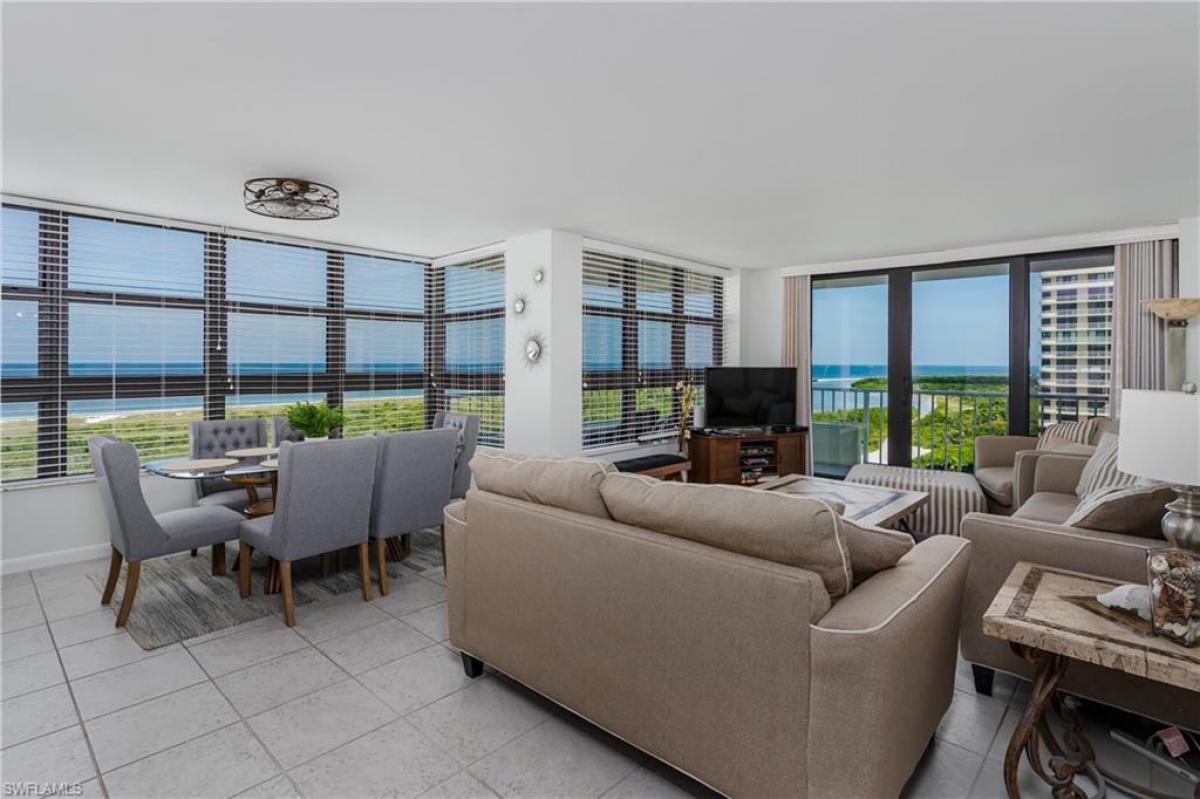 Panoramic views of the beach, Gulf of Mexico and scenic island views. 12th floor furnished front unit features a wrap-around lanai, updated kitchen and bathrooms, impact windows and sliding doors, tile and vinyl flooring. Tower 2 has gone through an extensive update including an exercise room, new lobby, windows, doors, flooring, furnishings and much more. The gated community of South Seas offers a resort style pool, beach access, under building park with EV chargers available, tennis, pickleball, extra storage, common boat slips for lease, kayak storage, laundry facilities and more. Welcome to your Piece of Paradise.