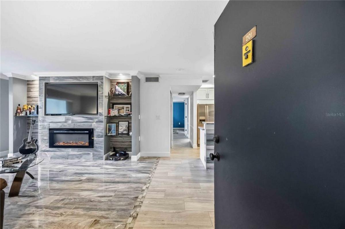 Welcome to Village Brooke Condominiums!This hidden gem is tucked away from traffic and noise and surrounded by oak-covered roads, lakes with gazebos, two community pools, lighted tennis courts, pickleball, shuffleboard, grill areas, and a clubhouse—while still being centrally located near all daily necessities. The unit also includes designated parking for added convenience.This completely remodeled second-floor condo features high-end finishes and thoughtful upgrades throughout. The living room showcases Italian porcelain tile, a custom entertainment center with an electric fireplace, and a dry bar. Additional updates include new paint, doors, lighting, fans, crown molding, and baseboards. A screened-in lanai allows natural light to fill the space.The kitchen offers brand-new stainless steel appliances, upgraded blue granite countertops, subway tile backsplash, a granite sink, bright cabinetry, a large pantry/storage closet, and a breakfast bar that opens to the dining room.Down the hallway, an additional storage closet, two bedrooms, and two full bathrooms. Both bedrooms accommodate a king bed, feature upward crown lighting, and overlook green space. The slightly larger primary bedroom includes a custom closet with a built-in safe. The wall between the two bedrooms has been tiled for soundproofing, privacy, and an elevated design finish.Both the primary en-suite bath and guest bath feature large walk-in showers with rain showerheads, sliding glass doors, updated vanities, new toilets, and Italian porcelain tile with mosaic accents. Both bathrooms also include upgraded exhaust fans with Bluetooth speakers for music or podcasts.Just outside the front door is an additional storage closet, and at the bottom of the steps is one of the community’s fenced-in pools with lounge chairs, picnic tables, restrooms, and a pergola—perfect for enjoying Florida weather. The number of amenities included for such a low fee is rare in this market.There is truly nothing like this condo available—schedule your showing today!Location Highlights:• 4 miles to Siesta Key• Under 1 mile to the Legacy Trail• Less than 0.5 miles to numerous restaurants, salons, pet stores, Walgreens, Starbucks, major banks, HomeGoods, gyms, Walmart, Publix, medical centers, golf courses, gas stations, and more