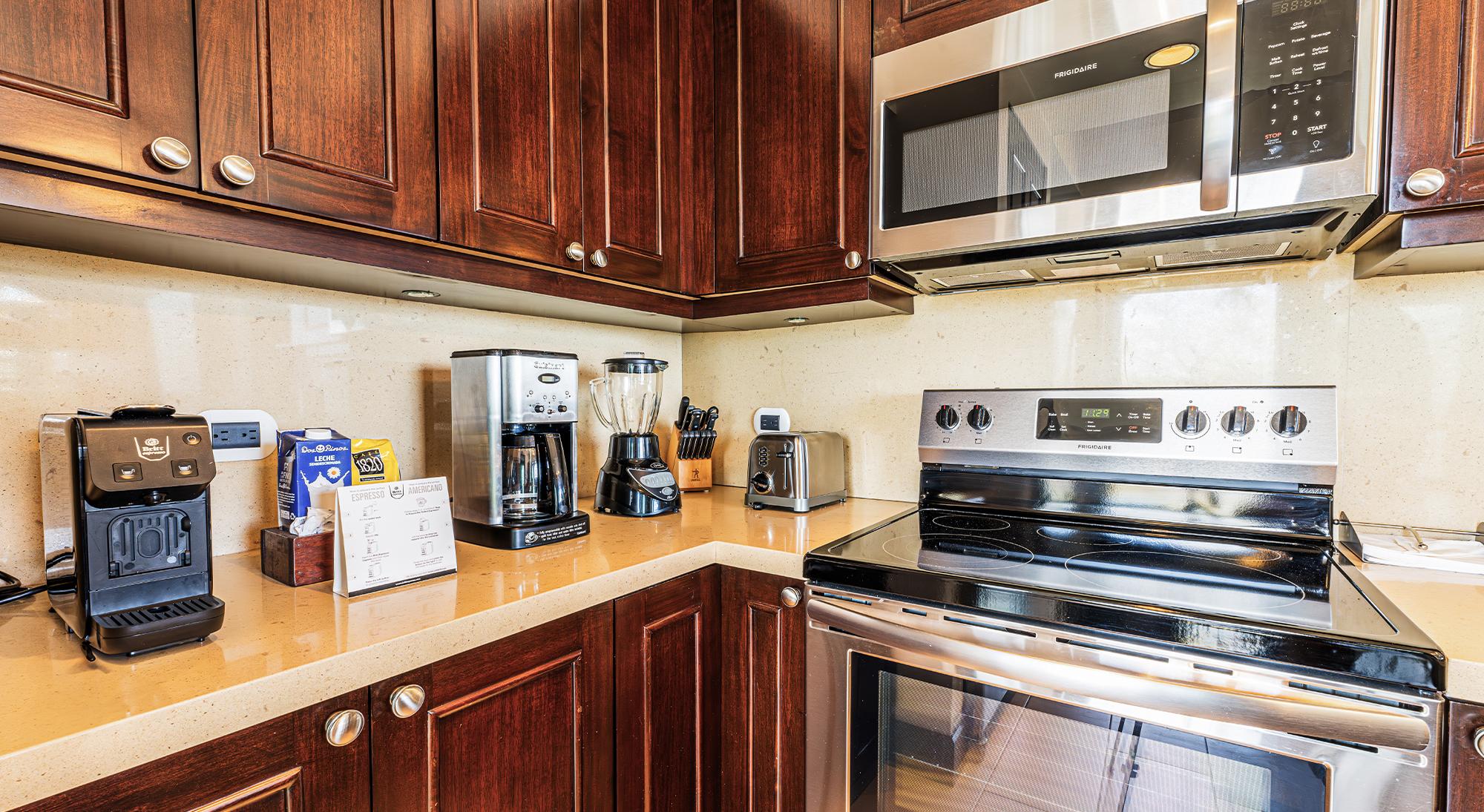Your own private walkway leads to the main entrance door that opens into an inviting foyer leading to the pleasant living area with stunning water views. The main living area features a comfortable pull-out queen size sofa, fully equipped kitchen with stainless steel appliances, granite counters, and a four person breakfast bar. There are also separate laundry facilities and two relaxing ocean view terraces.