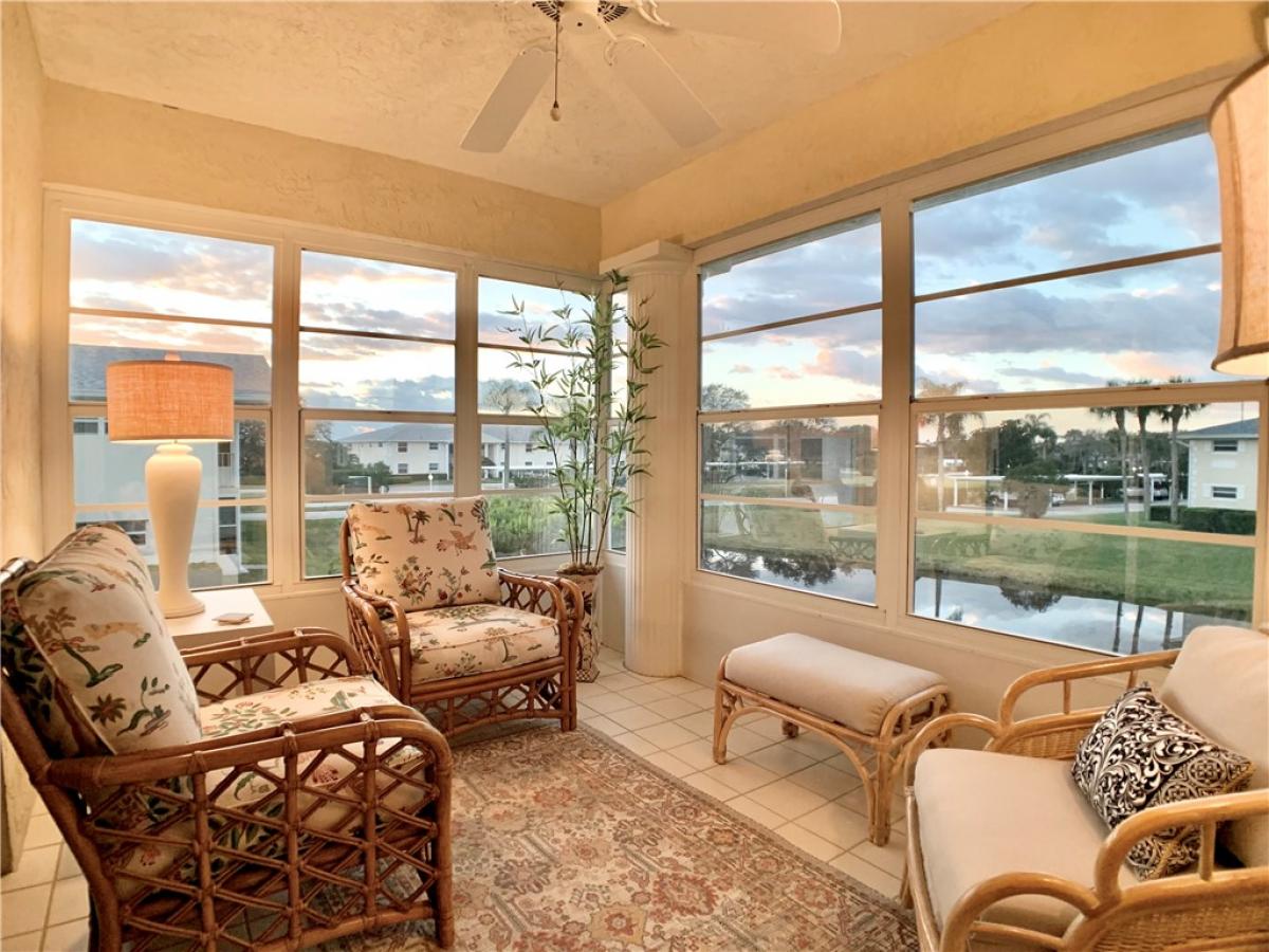 Offered turn key and ready NOW! Never before on market! Stunning views from this 2 bdrm/2 bath 2nd floor condo! Features walk-in closets in both bedrooms, luxury vinyl plank floors(2019) in living/dining, bedrooms. Serene enclosed porch overlooking water and lush landscaping. A/C 2018, W/H 2018. New commercial grade washer and dryer 2022. Condo used sparingly by seasonal owners. Active 55+ community boasts 2 pools & clubhouses, tennis, nature trail, exercise facility, kayak launch & racks, guarded entrance! Plenty of social activities too!