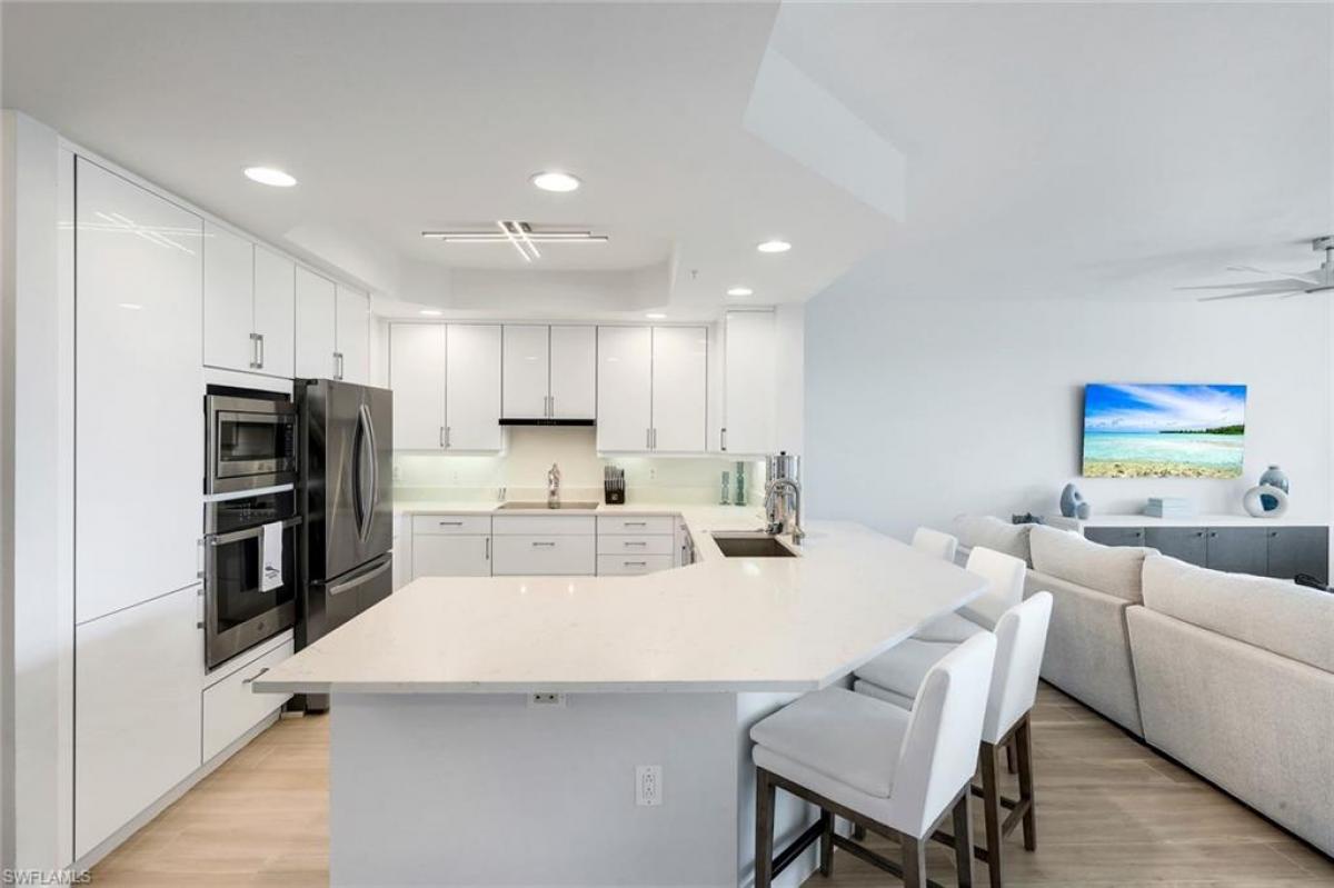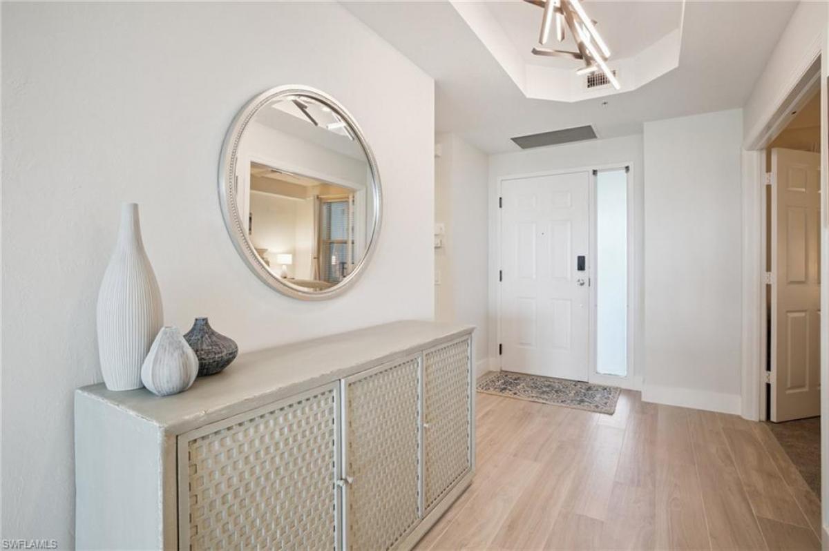 Welcome to Caribe at Cove Towers! A gated luxury high-rise community perfectly positioned along the tranquil Wiggins Bay in North Naples.This recently renovated 3-bedroom, 2-bath residence blends timeless style with modern comfort, featuring a spacious open-concept layout. Features include new, wood-like plank tile flooring, tray ceilings, recessed lighting, and upgraded electrical and plumbing fixtures throughout.The newly renovated kitchen is designed for both beauty and function, showcasing brand-new quartz countertops, brand-new stainless-steel GE built-in wall microwave & oven, new LG refrigerator & dishwasher, and a brand-new, sleek induction cooktop & hood. The utilities room includes brand-new LG, ThinQ Washer & Dryer. The primary bedroom has new custom closets by Closets by Design.Enjoy peace of mind with impact-resistant windows and electric storm shutters, along with garage parking and a private storage locker.Cove Towers is located in North Naples just minutes from Mercato, Waterside Shops, & The Pavilion.Residents at Cove Towers enjoy access to resort-style amenities, including a community pool, clubhouse, fitness center, tennis courts, EV charging, marina access, on-site dining, and private beach access. Optional Tarpon Cove Club membership provides even more opportunities to embrace the Naples lifestyle — with a private boat shuttle to the beach, social activities, and waterfront dining.Come experience the perfect blend of luxury, comfort, and coastal charm at Caribe in Cove Towers — your slice of paradise in Naples awaits!