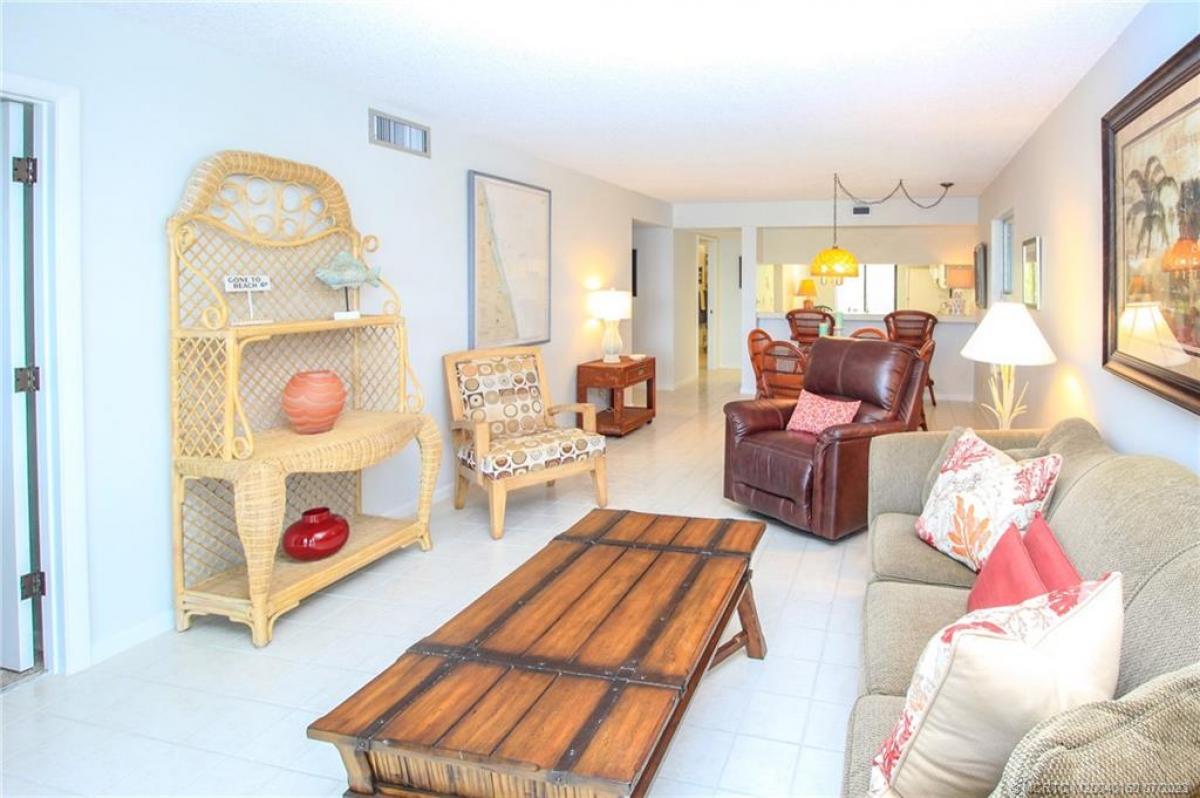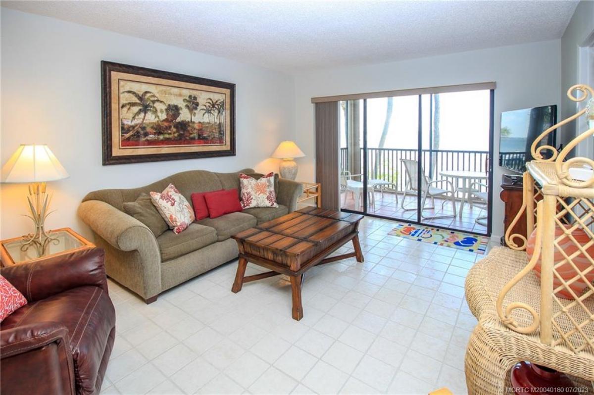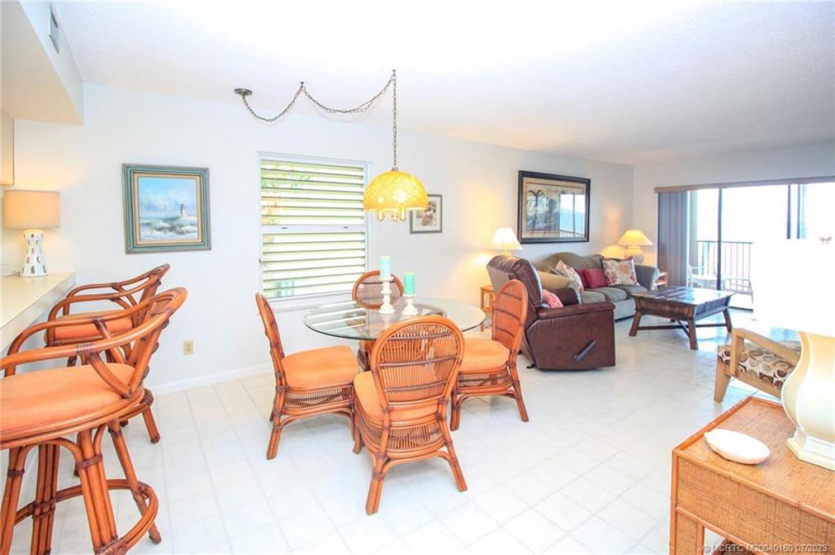 Spacious, bright & light end unit now available at Sandpebble on Hutchinson Island! This 3rd floor condo will not disappoint with wide river views and over 1200 square feet of well-maintained living space. Newer paint throughout, partial Impact windows and updated louvered windows, tasteful furnishings and so much more! Sandpebble is a special place with 5 heated pools, boat slips for rent (subject to availability), kayak storage, tennis & pickle ball, private beach access and a welcoming social atmosphere. Concrete restoration, exterior painting and new roofs in 2022/2023 completed. Units may be rented immediately with a 60-day minimum; one pet less than 20 pounds is permitted. Here is your opportunity to secure the ideal vacation spot or full-time residence on the Treasure Coast.