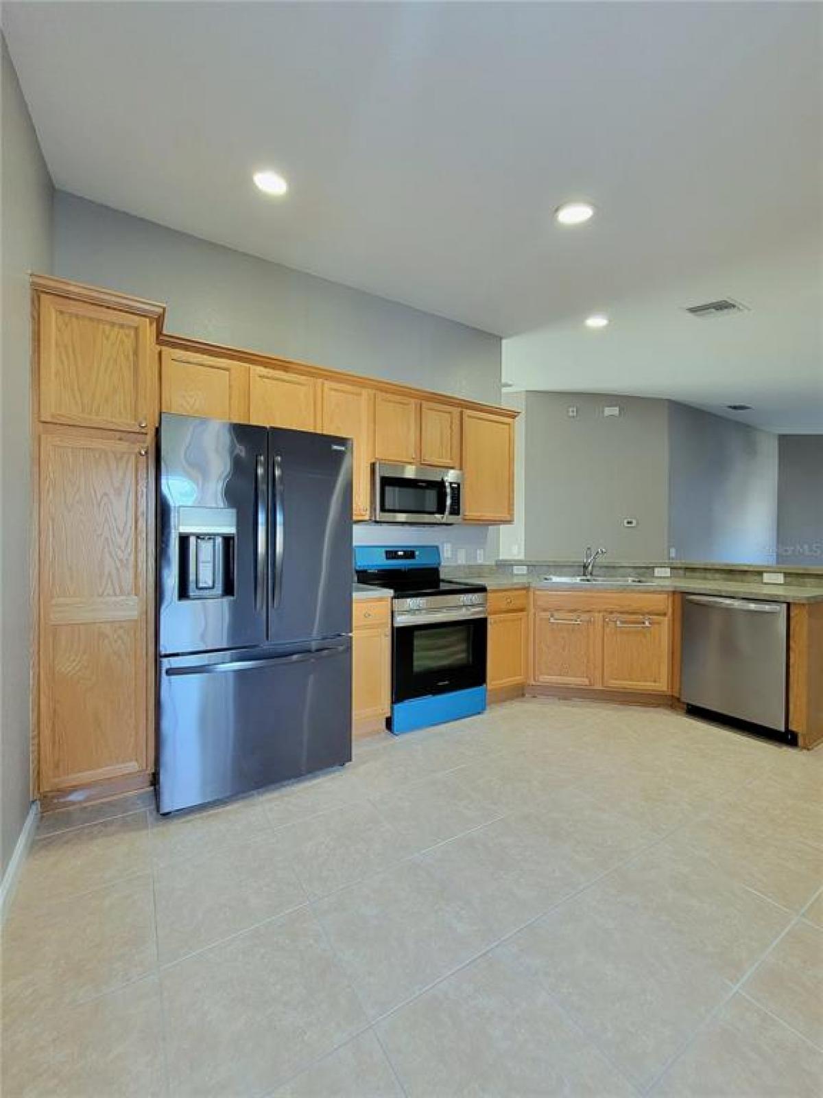 Welcome to this spacious, second story condo located in the Brighton gated community in Fore Ranch! This 3 bedroom, 2 full bathroom, and 1 car garage also has large lanai and is 1,864 sq ft. The screened-in lanai on the rear of the unit has a ceiling fan and is great for lounging. The unit has been recently updated with new carpet throughout, interior painting, and a new kitchen appliance suite, with the exception of the refrigerator that is a few years old. The kitchen is very functional and also has the laundry closet. The formal dining room has updated lighting. Guest bedrooms are both a good size and guest bathroom has a tub/shower combo. The master bedroom brings in a lot of natural light and master bathroom features a large dual sink vanity, walk in shower, private commode, and a large walk in closet. Fore Ranch community has many amenities including a clubhouse with activities, pool, fitness gym, splash pad, playground, walking trails, tennis and basketball courts, and a soccer field. Location is great, just minutes away from SR 200 and I-75, along with shopping, restaurants, and medical. Schedule your private showing today!