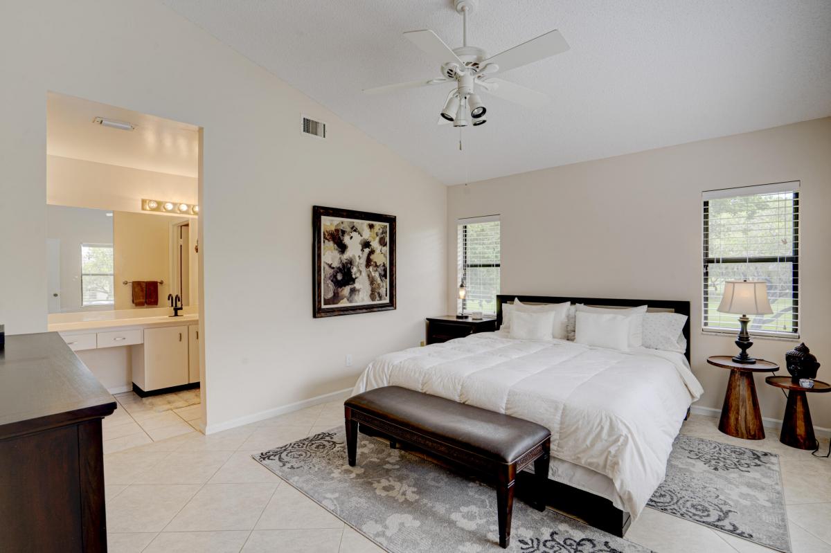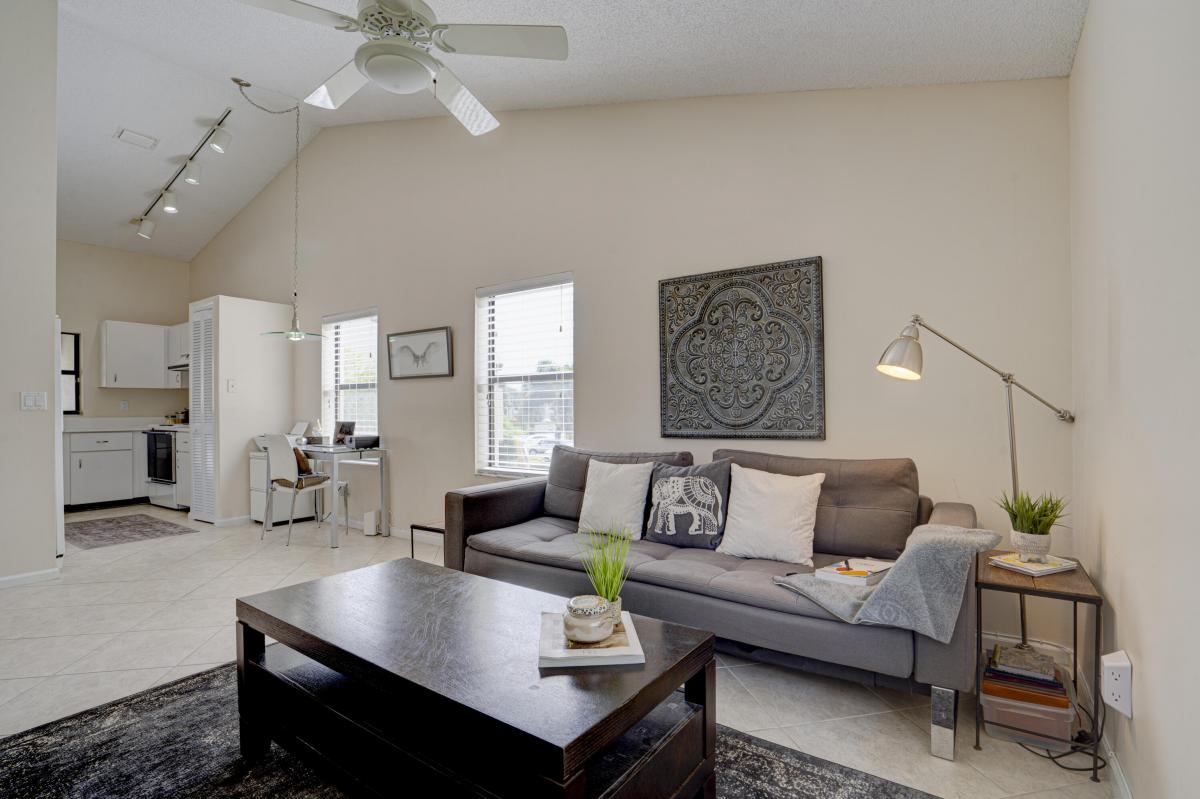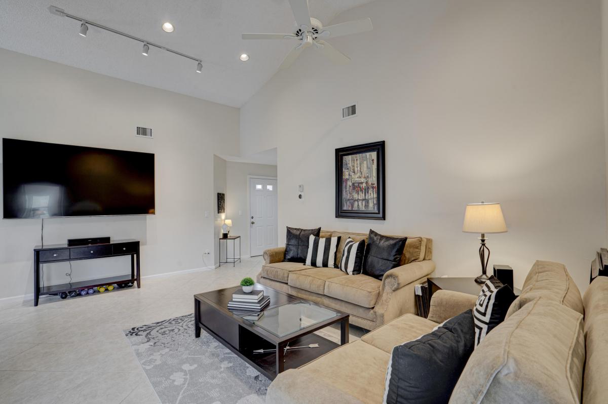 Welcome to The Coves of Aberdeen! This spacious and beautifully maintained corner unit offers 2 spacious bedrooms, 2 baths, plus a versatile den easily used as a 3rd bedroom. The open floor plan features vaulted ceilings, tile flooring throughout, and a serene screened patio with peaceful garden views. Enjoy a worry-free lifestyle with a new roof (2024) and strong reserves. The vibrant 55+ community boasts resort-style amenities with 3 pools, tennis, pickleball, fitness center, no membership required! Ideally located near shopping, dining, and services. Don't miss this opportunity for exceptional South Florida living!