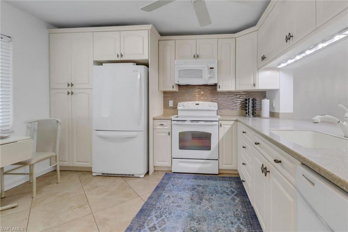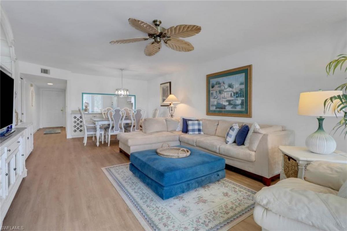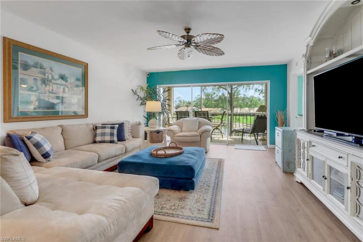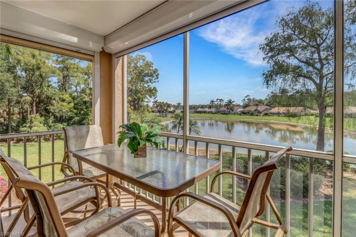 Enjoy stunning golf course and lake views from your 2nd floor furnished condo with an expansive lanai. Beautiful vinyl flooring, impact glass windows and electric shutters are some of the updates in this spacious condo. Royal Wood's Bloomfield Ridge community boasts excellent amenities, including a heated pool and spa, tennis, pickleball, and bocce courts, all just across from the condo. As part of the Royal Wood bundled golf community, you'll have immediate access to golf memberships and a newly renovated dining room. The community offers a variety of activities, including tournaments and social events throughout the year. Close to shopping and restaurants. A 14 minute drive to 5th Avenue.