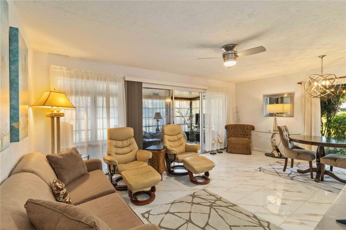 (Updated photos coming soon! New vinyl flooring in both bedrooms.) ** Winding tree-lined roads lead to Sea Grape Villas, where this FIRST FLOOR, CORNER UNIT sits on a preferred cul-de-sac. A covered, screened-in lanai offers a private entrance with seating, access to the backyard, and a separate laundry room.Inside, you'll notice the NEW flooring and light fixtures. The open layout connects a REMODELED white & bright kitchen with updated countertops, a large sink, and generous storage that leads into the dining area. Sliding glass doors in the dining room open to a shaded garden with bench seating.Just beyond is the living room and sunroom, both filled with natural light and open views of the unobstructed, private backyard green space and Florida sunsets.The primary bedroom features a walk-in closet, an UPDATED en-suite bathroom, and sliding glass doors with plantation shutters. The guest bedroom also features sliding shutters, a private bathroom. BOTH bedrooms share access to a fenced-in zen courtyard, ideal for morning coffee or relaxation. FURNISHINGS OPTIONAL. Bird Bay Village is a pet-friendly & active community with access to trails, pickleball, tennis, a lap pool, multiple gyms, shuffleboard, and a clubhouse with activities and events. The legacy Trail is just a block away and is a neighborhood favorite. Major shopping like HomeGoods & PetSupermarket, award-winning restaurants, beauty boutiques, banking, and more are located just outside of the neighborhood entrances.Venice Island is conveniently located less than two miles away, providing the Venice Theater, Art Center, Venice Beach, Marina, golfing, Yacht Club, Jetty, Dog Beach, Fishing Pier, airport, parks, playgrounds, and cultural venues. The Bird Bay Village community is welcoming and has something for everyone! This unit is priced competitively. Contact your Realtor® for more information and to schedule your private tour today!
