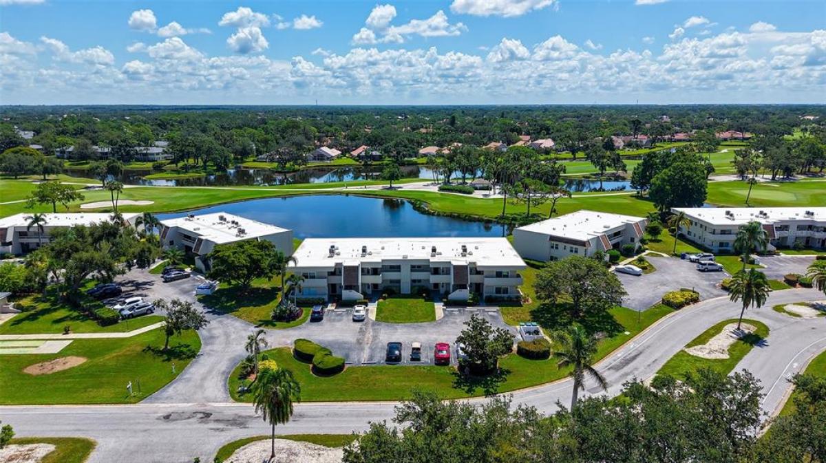 Highly sought after 2 Bedroom and 2 Bath Condo with fabulous water and golf course views of the Champions Course of the Palm Aire Country Club. This super clean, updated and remodeled condo is being offered Turnkey Furnished. The tiled Living Room/Dining Room combo is great for entertaining or just relaxing. The two Bedroom en-suites have their own private baths, both updated and remodeled in 2019. PGT Impact Windows were also added in 2020 and 2021. Primary Bedroom has separate mirrored make-up counter and walk-in closet. Kitchen has granite counter tops, designer glass backsplash, newer appliances, eat-in area and separate entrance. Both entrances have folding screen doors to bring refreshing cross breezes throughout the condo. Other notable updating: Roof of building and Air Handler replaced in 2019. Washer/Dryer and Refrigerator in 2020. Air Conditioner in 2021. Designer Ceiling Fans and Living Room Furniture in 2023. Newer sliding glass doors enclose the porch/lanai, perfect for your year-round enjoyment. This condo is an excellent investment opportunity with either annual or seasonal rentals. Palm Aire CC is offering specials for Golf, Sports and Fitness and Social Memberships, however memberships in the club are not mandatory. Convenient location close to the UTC Mall, Benderson Rowing Venue, Sarasota Airport and the local beaches.
