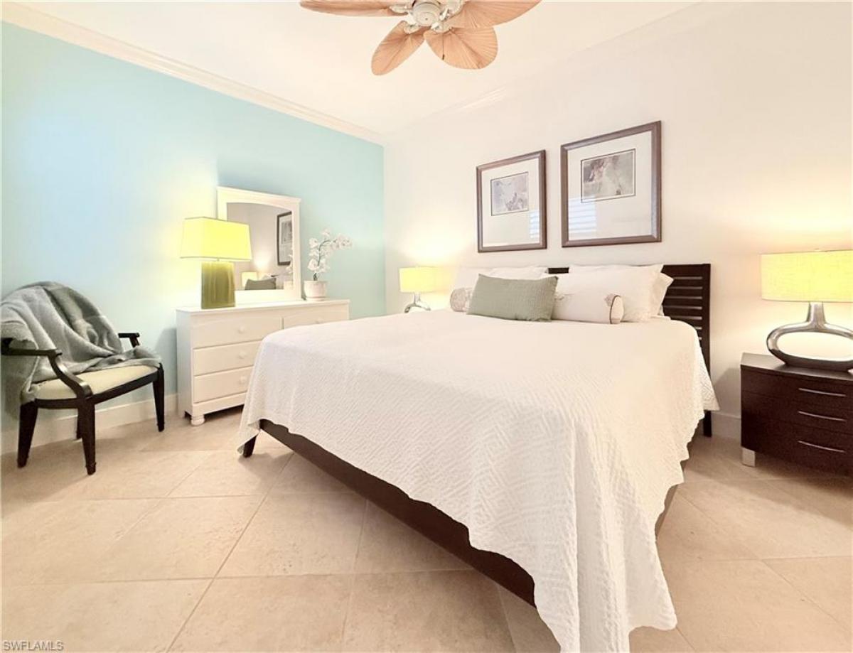 Beautiful condo with Golf Membership to Naples Heritage Golf and Country Club. This 2BR, 2Bath condo is being offered turnkey. Open concept, very popular Brookside floorplan. Condo has an abundance of natural light without the intense heat of sun. Enjoy a peaceful water, golf course and preserve view. Tastefully furnished and tile flooring throughout! Kitchen has SS appliances, white shaker cabinets, beautiful quartz countertops and breakfast bar. Eat in kitchen has bay windows that look out to water and golf. Kitchen is equipped with pantry. The main living area is open to dining area & kitchen which is perfect for daily living as well as entertaining. Living room opens to screened covered back lanai with tile floors. The NW rear exposure offers priceless sunset views. Dining room has built in cabinets and shelving. Spacious primary bedroom has plantation shutters, walk-in closet and smaller secondary closet for additional storage. Primary bath has been updated with white shaker vanity, quartz countertop, frameless glass shower door & newer lighting. Guest bedroom has plantation shutters, built in desk and storage unit along with custom designed closet. Guest bath updated with white shaker vanity, quartz countertop & newer lighting. Back screened lanai has tile floors. Deeded carport parking & outside storage room. Building equipped with elevator. Naples Heritage is a beautifully landscaped, gated, bundled golf community situated on 550 acres of pristine lakes & preserves. The 18 hole golf course, putting green, driving range, renovated clubhouse w/ pro shop, resort style pool w/ cabana, tennis courts, pickleball courts, bocce ball and fitness center are all part of the Naples Heritage lifestyle. Just minutes from downtown restaurants, shopping & beaches.