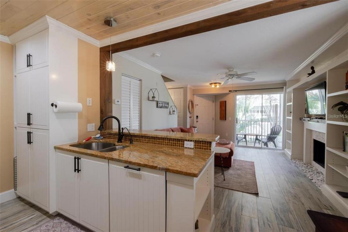 Outstanding new price! Don’t miss this downtown condo with amenities that rival those of a country club! Situated along the Hudson Bayou, Central Park residents have access to a private dock for fishing, kayaking or relaxing on the water. The clubhouse offers a beautiful meeting room and fitness center adjacent to the large community pool and tennis courts. This corner condo spans the second and third floor, so there are no neighbors overhead. Beautifully remodeled, it features custom built-ins and a cozy fireplace in the Living Room; granite counters, RO water filter and SS appliances in the Kitchen; washer & dryer upstairs. The Bedroom is adorable with its walk-in closet and screened lanai. The HOA fee covers all amenities as well as water, sewer, trash, cable TV and internet, lawncare & outside maintenance. Rentals allowed immediately for a minimum of 30 days (about $3000/month seasonally, or make it your full-time residence if you enjoy the nightlife of downtown Sarasota or work in the city or at SMH.