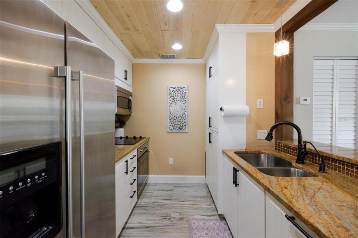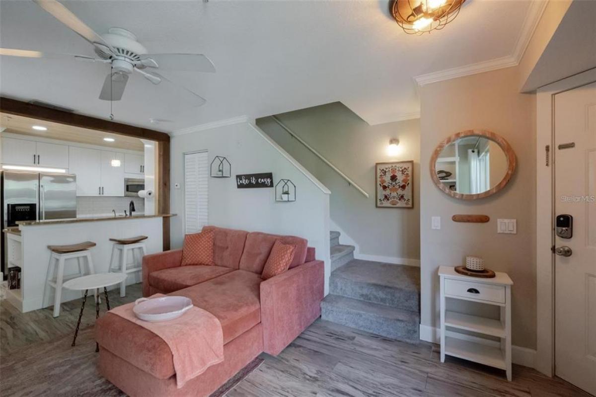 Outstanding new price! Don’t miss this downtown condo with amenities that rival those of a country club! Situated along the Hudson Bayou, Central Park residents have access to a private dock for fishing, kayaking or relaxing on the water. The clubhouse offers a beautiful meeting room and fitness center adjacent to the large community pool and tennis courts. This corner condo spans the second and third floor, so there are no neighbors overhead. Beautifully remodeled, it features custom built-ins and a cozy fireplace in the Living Room; granite counters, RO water filter and SS appliances in the Kitchen; washer & dryer upstairs. The Bedroom is adorable with its walk-in closet and screened lanai. The HOA fee covers all amenities as well as water, sewer, trash, cable TV and internet, lawncare & outside maintenance. Rentals allowed immediately for a minimum of 30 days (about $3000/month seasonally, or make it your full-time residence if you enjoy the nightlife of downtown Sarasota or work in the city or at SMH.