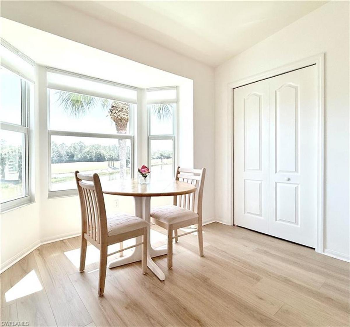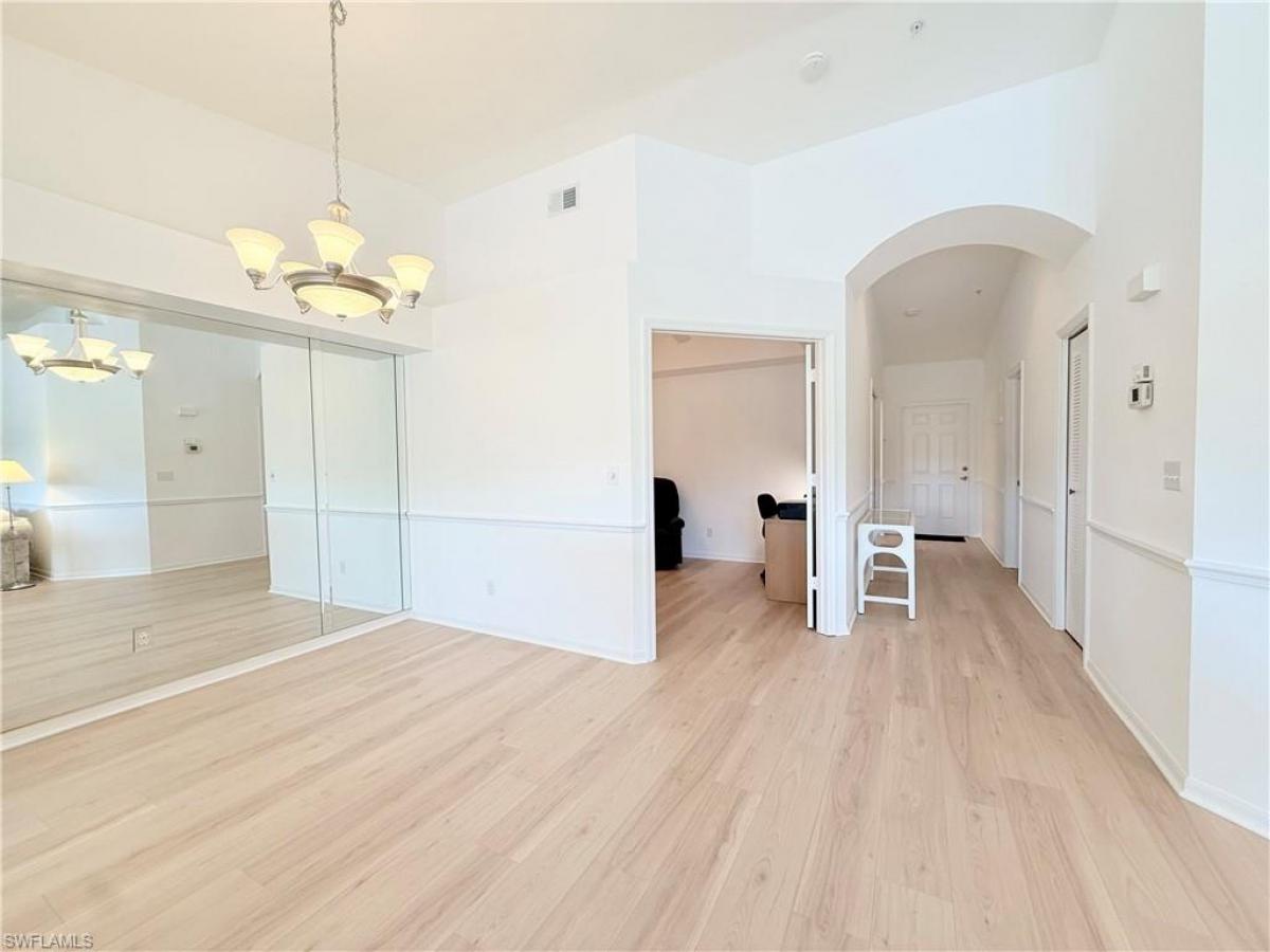Located in Naples Heritage Golf and Country Club this rarely available Dogwood floor plan has 2 bedrooms + DEN, 2 baths and a one car garage. Its open concept makes it a favorite among homeowners … perfect for everyday living as well as entertaining. Current owner recently installed top of the line light oak colored vinyl plank flooring with the highest quality underlayment (Nov 2024). Entire condo has been professionally painted including walls, closets, baseboards, doors, and trim (2/2025). Condo features new impact windows with new removable screens (3/2024). Both front and back lanais have new large tile flooring (installed in 2023/2024) … front lanai has new no seeum screening. Back lanai looks out to lake, golf course and preserves.Condo has all white kitchen with bay window and pantry. Laundry closet has room for storage (high end washer with 5-year maintenance plan (1/2025). Spacious primary bedroom has 2 walk in closets and ensuite with walk in shower. Additional den offers room for home office or third bedroom when needed. Located within walking distance to clubhouse and 2 satellite pools. Enjoy the NH lifestyle- premier 18 hole golf course, putting green, driving range, renovated clubhouse w/pro shop, resort style pool, tennis courts, pickleball courts, bocce, fitness center, Community resort style pool with cabana bar. Just minutes from downtown 5th Ave & beaches. More than a home its a Lifestyle!
