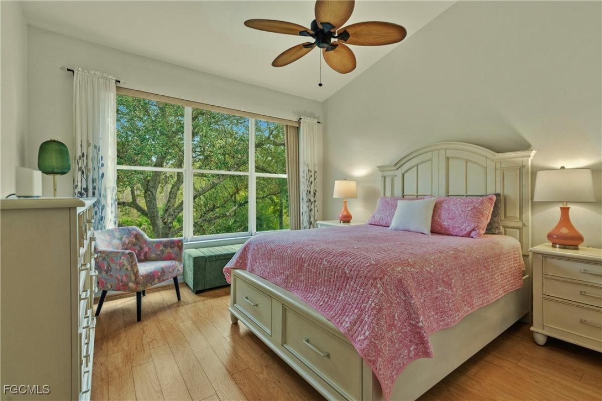 ATTRACTIVELY UPDATED UPSTAIRS END UNIT THAT OFFERS TERRIFIC OPEN FLOOR PLAN WITH HIGH CEILINGS. This 2BR+Den unit has updated kitchen & baths. The kitchen features granite counters, tile backsplash, newer stainless steel appliances and newer sink with copper faucet. Both baths updated with granite counters & newer faucets. The master shower has newer frameless glass. The light oak wood floors through the main living areas really enhance the natural light & decor! Tile flooring in kitchen & baths with updated carpeting only on steps. The screened lanai also has been tiled and enjoys a tranquil tropical preserve view. A/C System replaced in 2021 and newer LG washer & dryer. Includes a Covered Carport Space & Storage Closet. Located in the highly desirable resort community of Colonial CC. Includes Social Membership which offers access to all community amenities plus Pay As You Play Golf. All community amenities have been just or recently refurbished in outstandinig fashion! The community features a highly rated 18 hole Golf Course, Clubhouse with Dining, Community Center with Full Fitness Center & Classes, Multiple Pools, Tennis, Pickleball, Bocce & MORE! Colonial CC has a convenient location, first class amenities and reasonable fee structure. YOUR NEW FLORIDA HOME IS READY FOR YOU!
