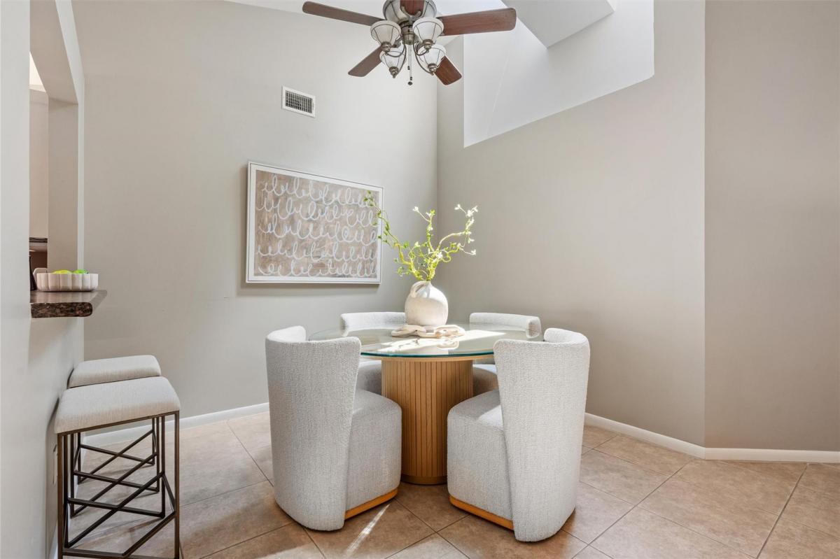 Welcome Home! You’re going to fall in love w/the open layout, cathedral ceilings & skylights which create a bright & airy flow throughout. Hunter Douglas blinds add a touch of class & ~YES~ those are 2 Big Ass Fans (literally!) offering both style & comfort. The bathrooms are generously sized & modern w/beautiful mirrors that elevate the design. Both bedrooms are comfortable in size & include closet built-ins for maximum storage. The primary suite features a stylish new barn door that opens to a beautiful spa-like bathroom & a walk-in closet. Enjoy the views of the lake & the lush, park-like grounds from the living area & primary bedroom. Wine down at the end of the day on your spacious screened-in patio ~ the perfect, serene place to relax. CHECK OUT THE VIDEO TOUR ABOVE!