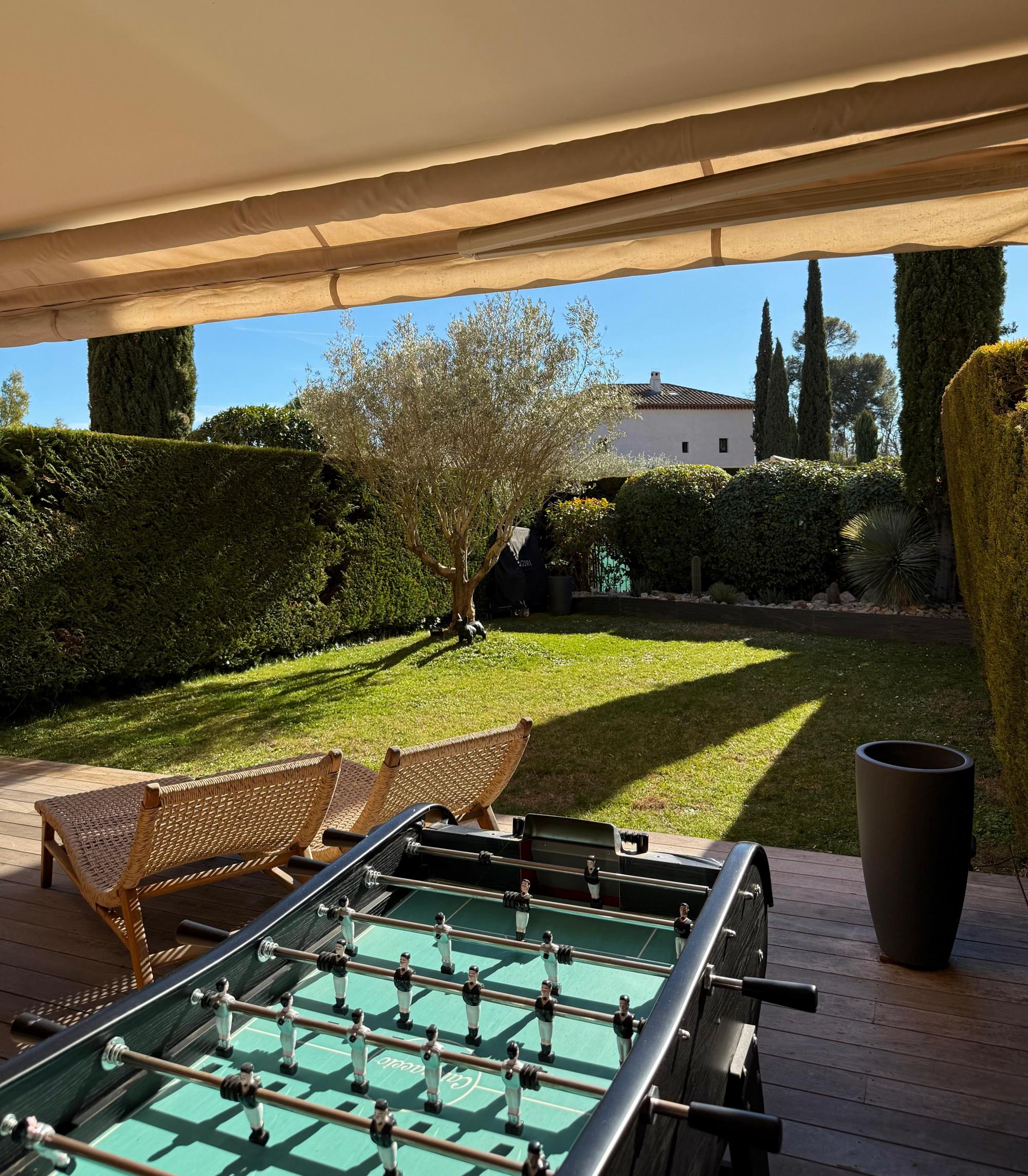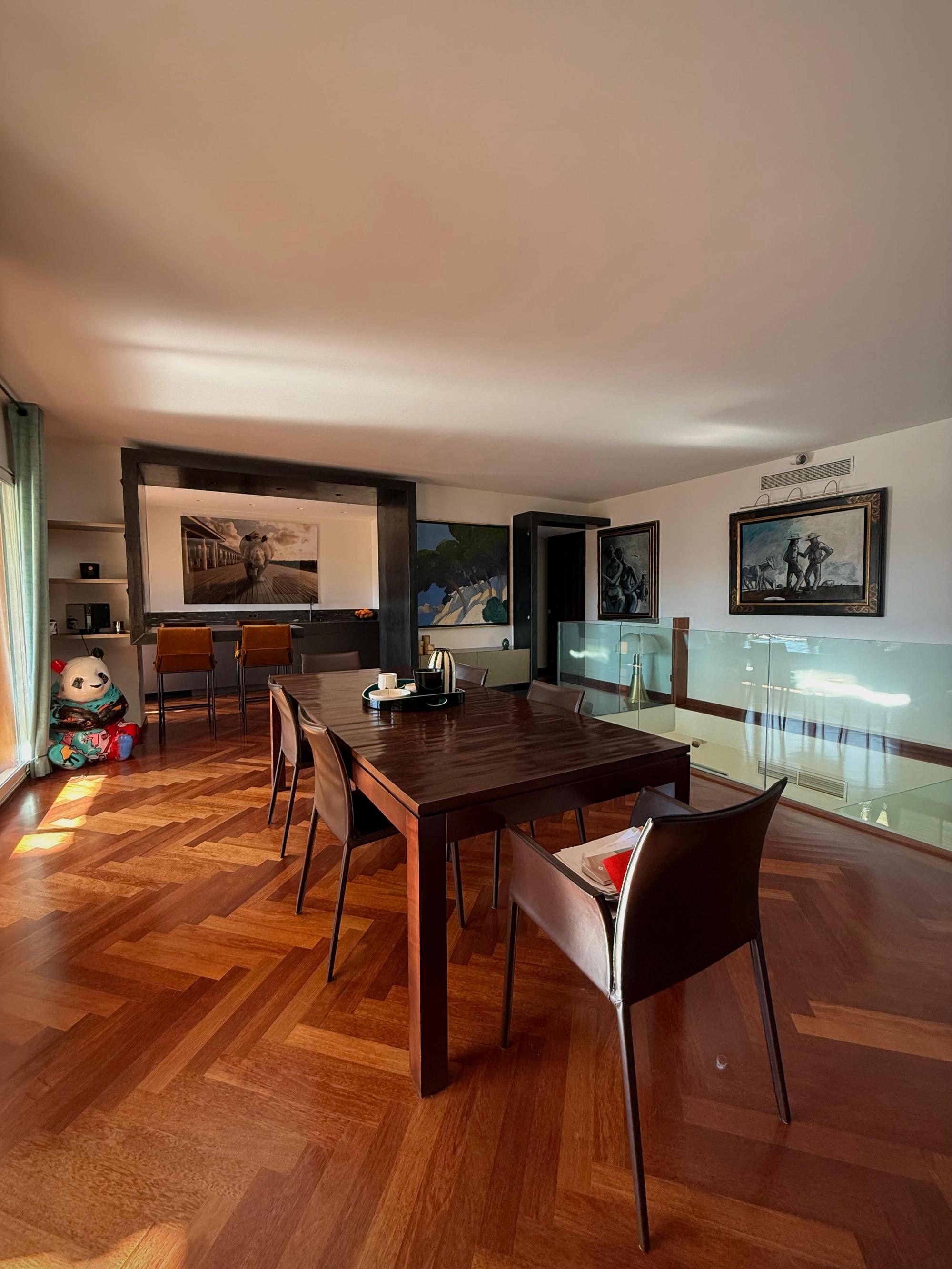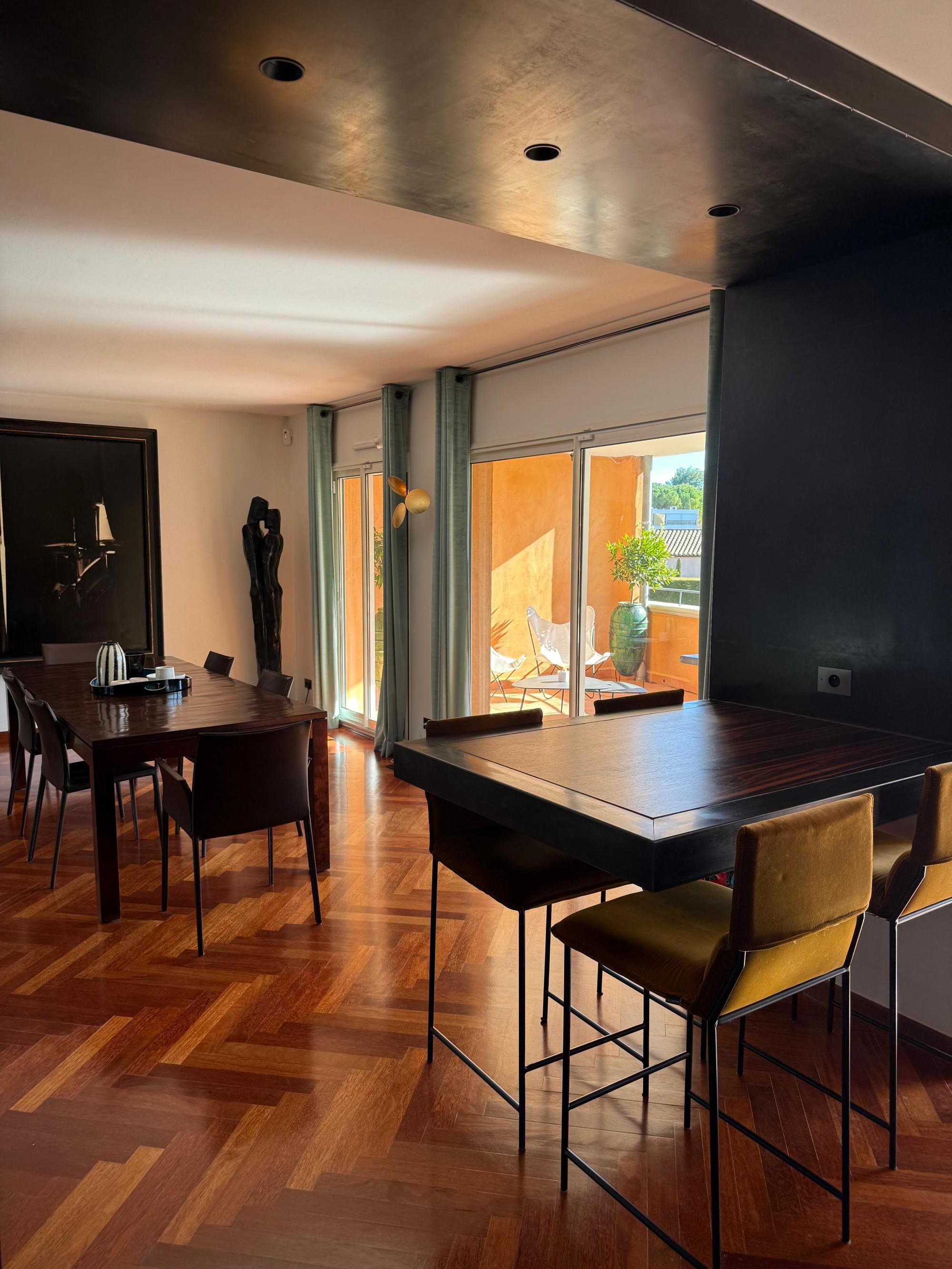 Upstairs, the atmosphere becomes warmer and more intimate with stunning parquet flooring throughout. A high-end contemporary kitchen and dining area open onto a terrace, ideal for entertaining or enjoying the Provençal lifestyle. Three additional bedrooms, two dressing rooms and two bathrooms complete this level.