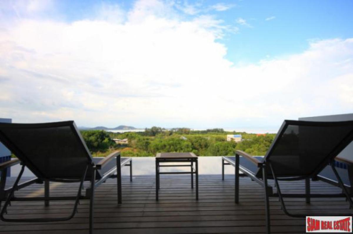 Two large contemporary four storey townhouses are for sale in the Koh Kaew area of Phuket. Each unit has five bedrooms and an additional maids room. All bedrooms have ensuite bathrooms with a sixth guest bathroom.The living space is very spacious and open. There is a living room, dining room and fully equipped western kitchen. The house is elegantly furnished in modern decor. Each unit has a private swimming pool and there is a roof top terrace to relax and enjoy the views. Bonus - There is enough space on the land to build a similar third property.