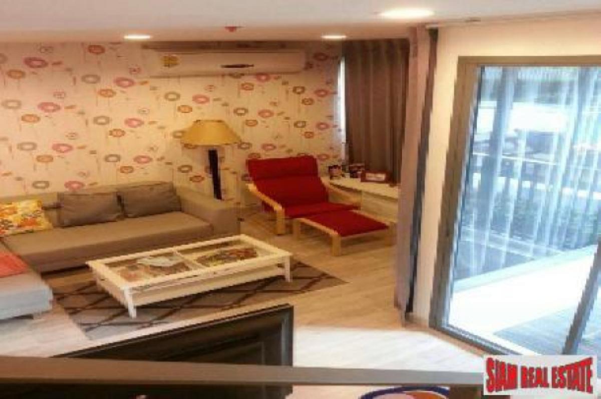 This is a two bedroom duplex being offered for sale. It is situated on the 4th and 5th floor of the Ideo Mobi Sukhumvit. The apartment is fully furnished and is 62.6 sqm.Downstairs is the open living area with a comfortable living room, dining area and Western kitchen. The kitchen is fully equipped and includes a refrigerator, stovetop and microwave. There is a good sized counter top and cupboards for storage.