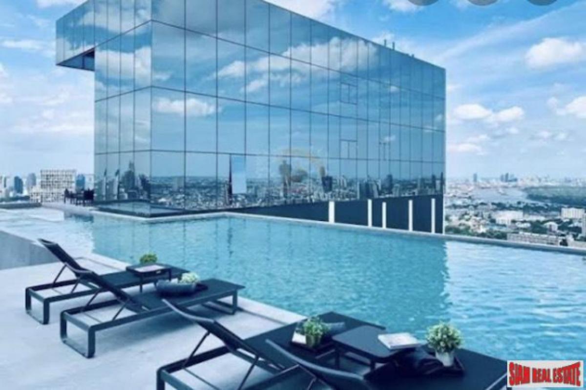 This is a comfortable and clean one bedroom duplex style condo for sale. Situated on the 28th floor the apartment has very good unblocked city views. This is a nice building with many amazing facilities including a sky pool and gym.The condo has high ceilings and an open living plan including a sofa, TV, dining table and kitchen. The kitchen includes a microwave, refrigerator and washing machine. Upstairs is the bedroom with a big bed, built-in wardrobe and desk / work station.