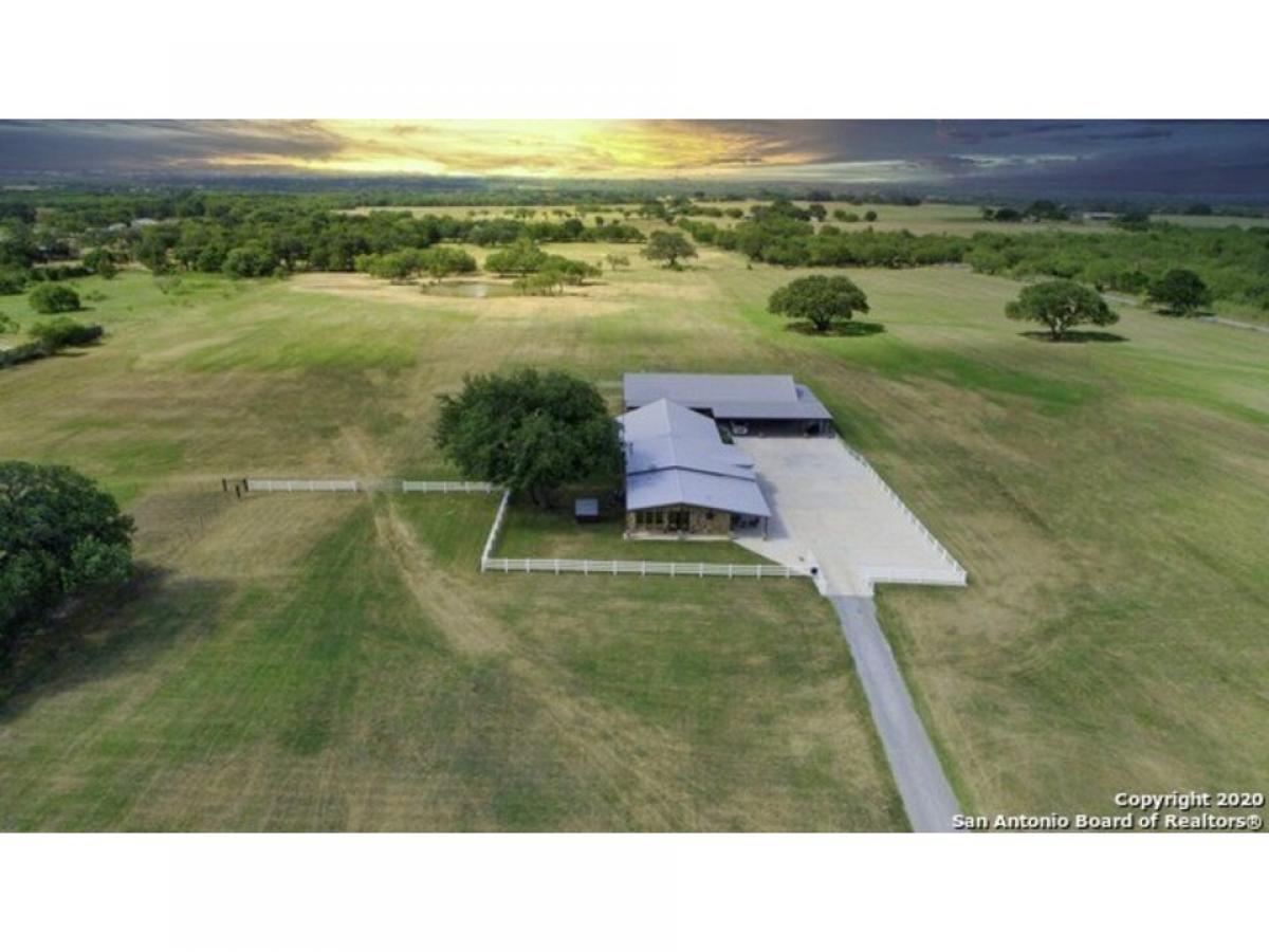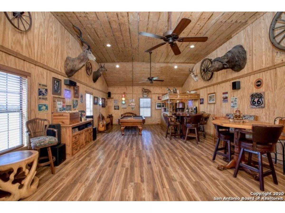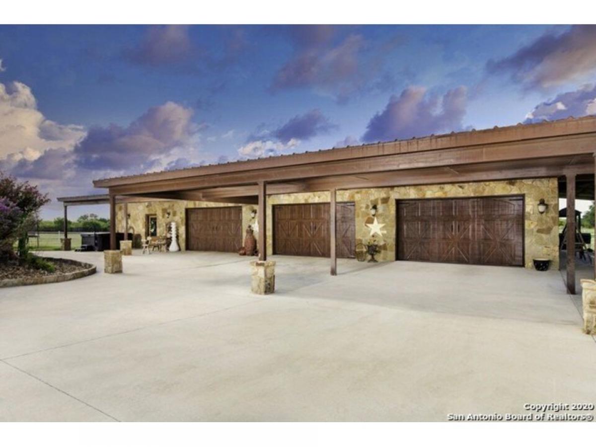 Seller Financing Available! Discover 26 acres of breathtaking open land adorned with vibrant bluebonnets, a tranquil pond, and majestic oak trees that create a serene and picturesque setting. This exceptional 3-bedroom, 4-bathroom home offers 3,952 sq. ft. of living space, complemented by an 800 sq. ft. man cave and a detached 12-car garage. The heart of the home-the classic country-style kitchen and family room-exudes rustic charm with exposed beams, custom cabinetry, cedar walls, tile floors, and a stunning stone hearth.