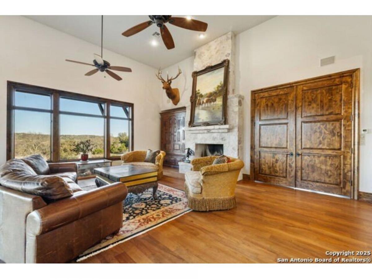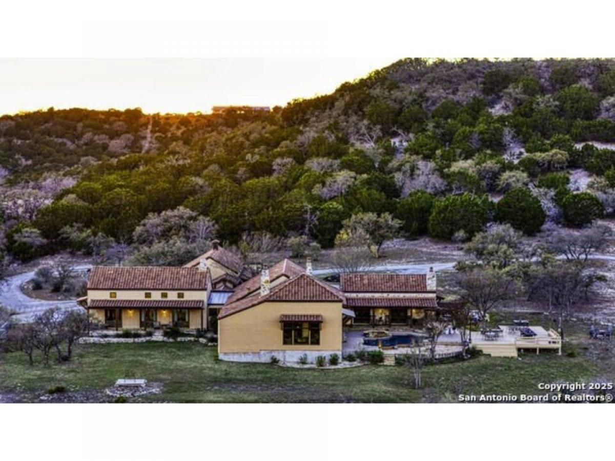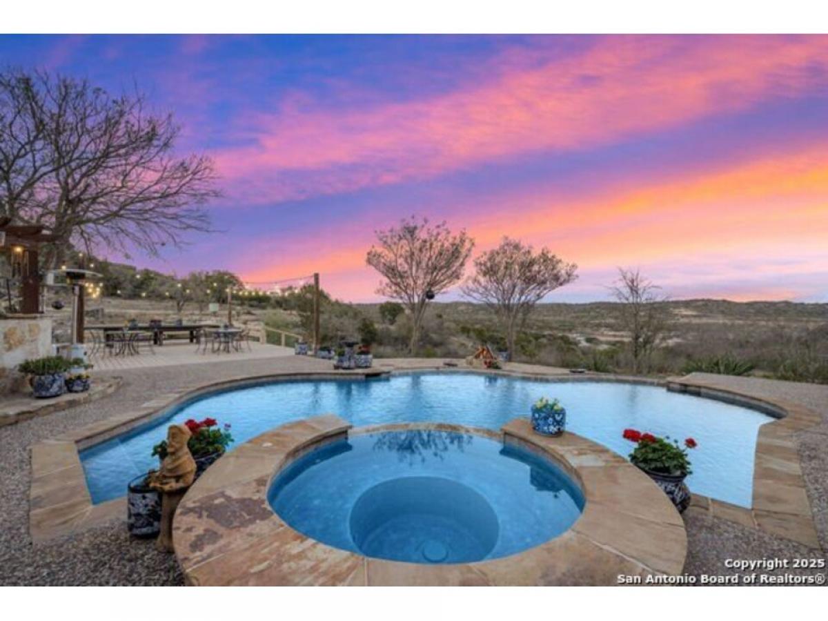 164 Camino del Reserve is a gracious Hill Country Hacienda with amazing views located in The Reserve @ Falling Water, a premiere gated neighborhood just outside of Comfort. Featuring a courtyard opening to the panoramic views overlooking 18+/- Acres, you#039;ll enjoy the refreshing pool, deep covered gallery porches and decking for entertaining, Casa del Linda offers the Main Dwelling with 5 bedrooms and a Casita. The Casita is fully functional w/Kitchen, Fireplace, Living Area, Separate Bed amp; Bath + laundry. Built by Buffalo Homes featuring detail finishes such as Masonry fireplaces, wood amp; saltillo floors, soaring ceilings, abundant stonework, solid Alder doors and a fitted wine closet. Built for entertaining in the classic Hill Country style, the Great Room amp; Entry/Dining Gallery are the perfect palette for art and gatherings. A flexible room w/wood-planked ceilings is located off the Great Room and can serve as: Office, Media or Gameroom. The chef-inspired Kitchen is open w/imported counters, wood-planked beamed ceilings, gorgeous views, plentiful cabinets, wood-clad center island amp; high end appliances. The commanding Primary Bedroom suite is a spacious restful retreat w/fireplace and doors opening to a covered portico to enjoy the views. The luxe spa-inspired bath offers dual sinks overlooking the views, center soak tub and expansive closet w/built-ins. 4 additional comfortable bedrooms round out the Main House. You#039;ll have plenty of room to hike and explore this estate w/trails and multiple view vantage points. The neighborhood offers a partial Wildlife Management exemption and a community water system and is conveniently located w/close proximity to Fredericksburg, Boerne amp; Kerrville. This timeless Hill Country Estate is the epitome of luxury living combining style and comfort.