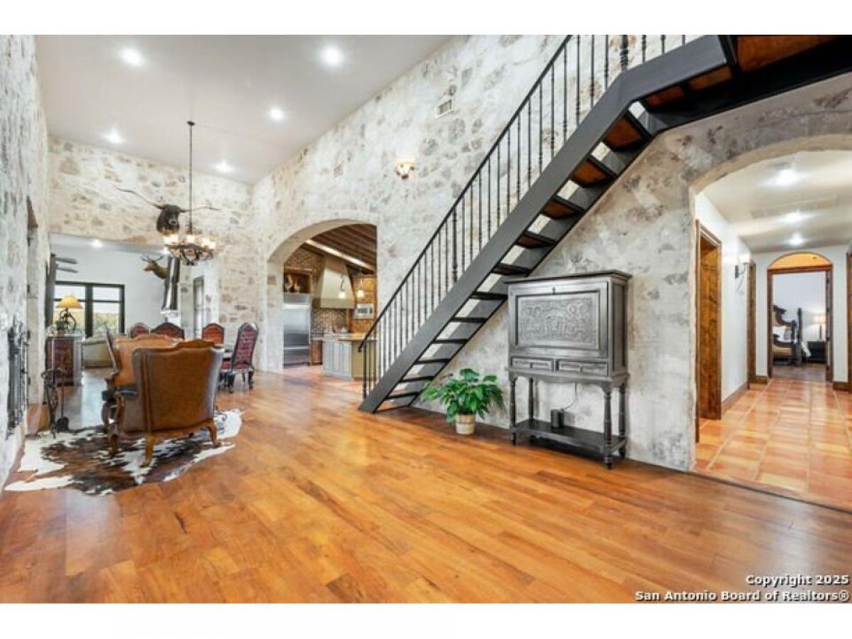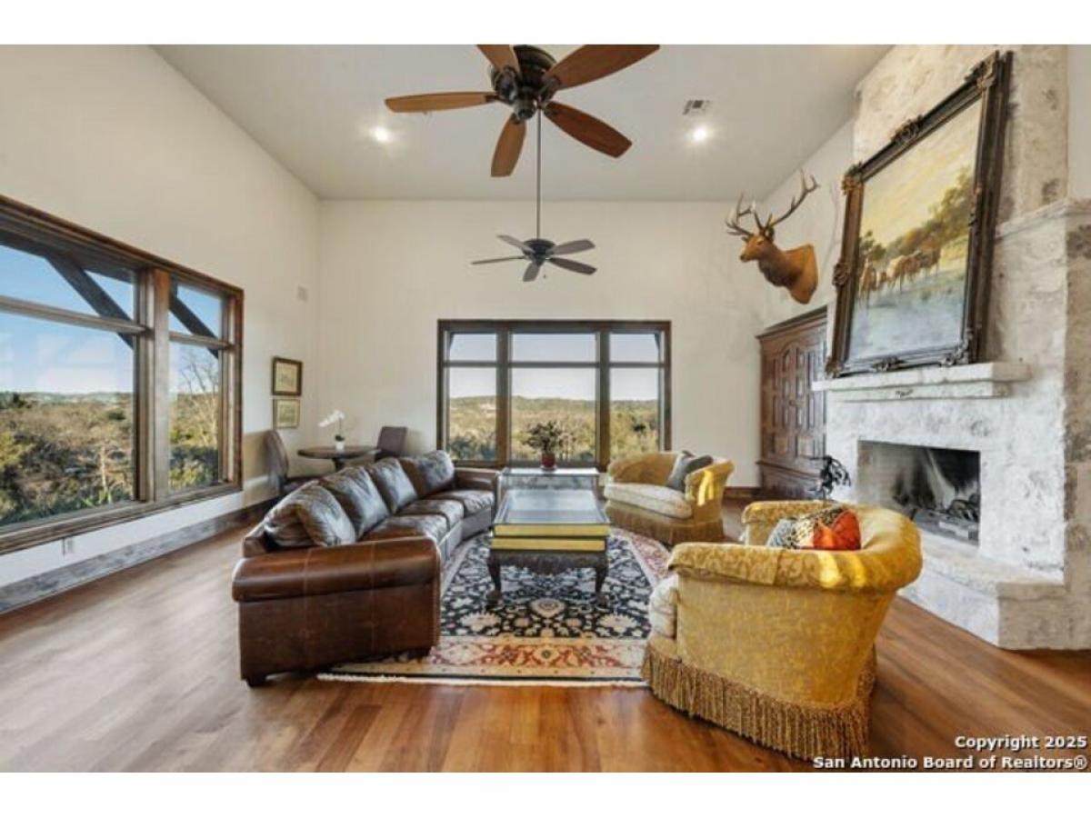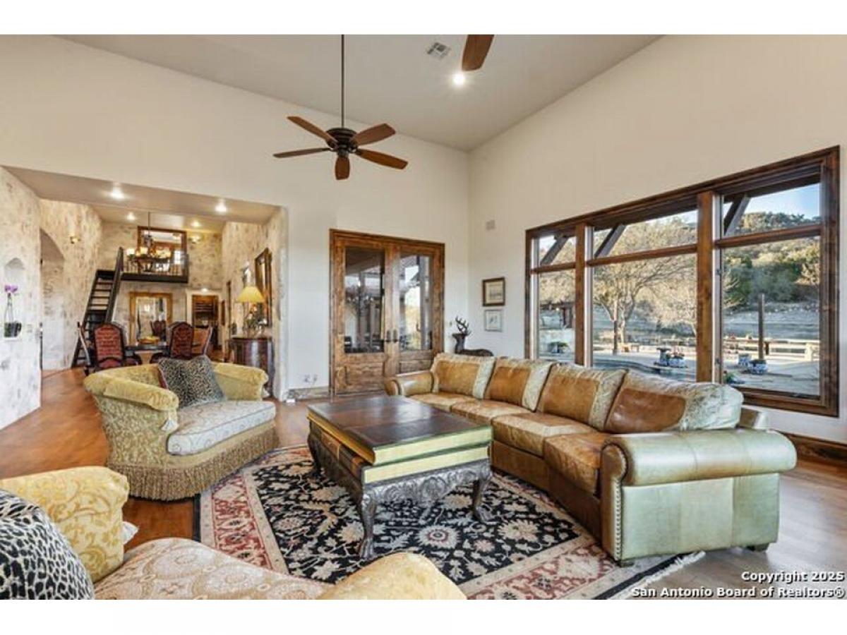 164 Camino del Reserve is a gracious Hill Country Hacienda with amazing views located in The Reserve @ Falling Water, a premiere gated neighborhood just outside of Comfort. Featuring a courtyard opening to the panoramic views overlooking 18+/- Acres, you#039;ll enjoy the refreshing pool, deep covered gallery porches and decking for entertaining, Casa del Linda offers the Main Dwelling with 5 bedrooms and a Casita. The Casita is fully functional w/Kitchen, Fireplace, Living Area, Separate Bed amp; Bath + laundry. Built by Buffalo Homes featuring detail finishes such as Masonry fireplaces, wood amp; saltillo floors, soaring ceilings, abundant stonework, solid Alder doors and a fitted wine closet. Built for entertaining in the classic Hill Country style, the Great Room amp; Entry/Dining Gallery are the perfect palette for art and gatherings. A flexible room w/wood-planked ceilings is located off the Great Room and can serve as: Office, Media or Gameroom. The chef-inspired Kitchen is open w/imported counters, wood-planked beamed ceilings, gorgeous views, plentiful cabinets, wood-clad center island amp; high end appliances. The commanding Primary Bedroom suite is a spacious restful retreat w/fireplace and doors opening to a covered portico to enjoy the views. The luxe spa-inspired bath offers dual sinks overlooking the views, center soak tub and expansive closet w/built-ins. 4 additional comfortable bedrooms round out the Main House. You#039;ll have plenty of room to hike and explore this estate w/trails and multiple view vantage points. The neighborhood offers a partial Wildlife Management exemption and a community water system and is conveniently located w/close proximity to Fredericksburg, Boerne amp; Kerrville. This timeless Hill Country Estate is the epitome of luxury living combining style and comfort.