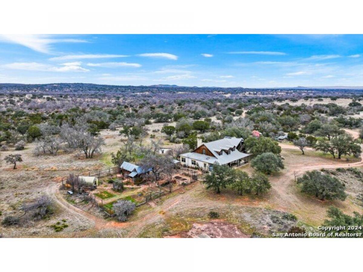 Nestled in the heart of Enchanted Vista, this beautiful 61.54-acre ranch stands as a testament to the beauty and solitude of the Texas Hill Country. Located just 23 miles north of Fredericksburg and a mere 2 miles from Enchanted Rock, it offers the perfect blend of seclusion and convenience, making it an ideal spot for those looking to escape the hustle without straying far from civilization. The land itself is a sight to behold, with gently rolling hills dotted with mature Live Oaks, Texas Persimmon, Juniper and other native foliage, providing not just a haven for game like whitetail deer, turkey, and axis; but a picturesque backdrop that defines the area. The presence of minimal hogs ensures the tranquility of the land is preserved. It#039;s a canvas of natural beauty, with scenic vistas that stretch towards the horizon, including Enchanted Rock. At the heart of the property sits a charming 2,800 sq. ft. custom ranch house, built on a bluff to capture awe-inspiring views of the surrounding landscape. Beside the house lies an expansive, fenced garden, a beacon of self-sufficiency adorned with fruit trees, plentiful beds, a greenhouse, and a workshop featuring a half bath for those sun-soaked days of labor. Nearby, a charming chicken coop and rabbit hutch enrich the setting, offering fresh produce and a taste of pastoral bliss. Beyond, a tranquil pond nestled behind the home provides a perfect haven for reflection or a peaceful afternoon angling. Supporting structures feature a detached two-car garage with a 550 sq.ft. living space above, as well as a vital water well for reliable household and agricultural water supply. Currently serving as a primary residence, this property holds the potential to be more than just a home, offering a seamless transition for those desiring a weekend retreat in the stunning Texas Hill Country. It stands as an inviting option for anyone in search of a secluded haven or a gathering spot for friends and family, providing a rare mix of privacy, scenic beauty, and accessibility.