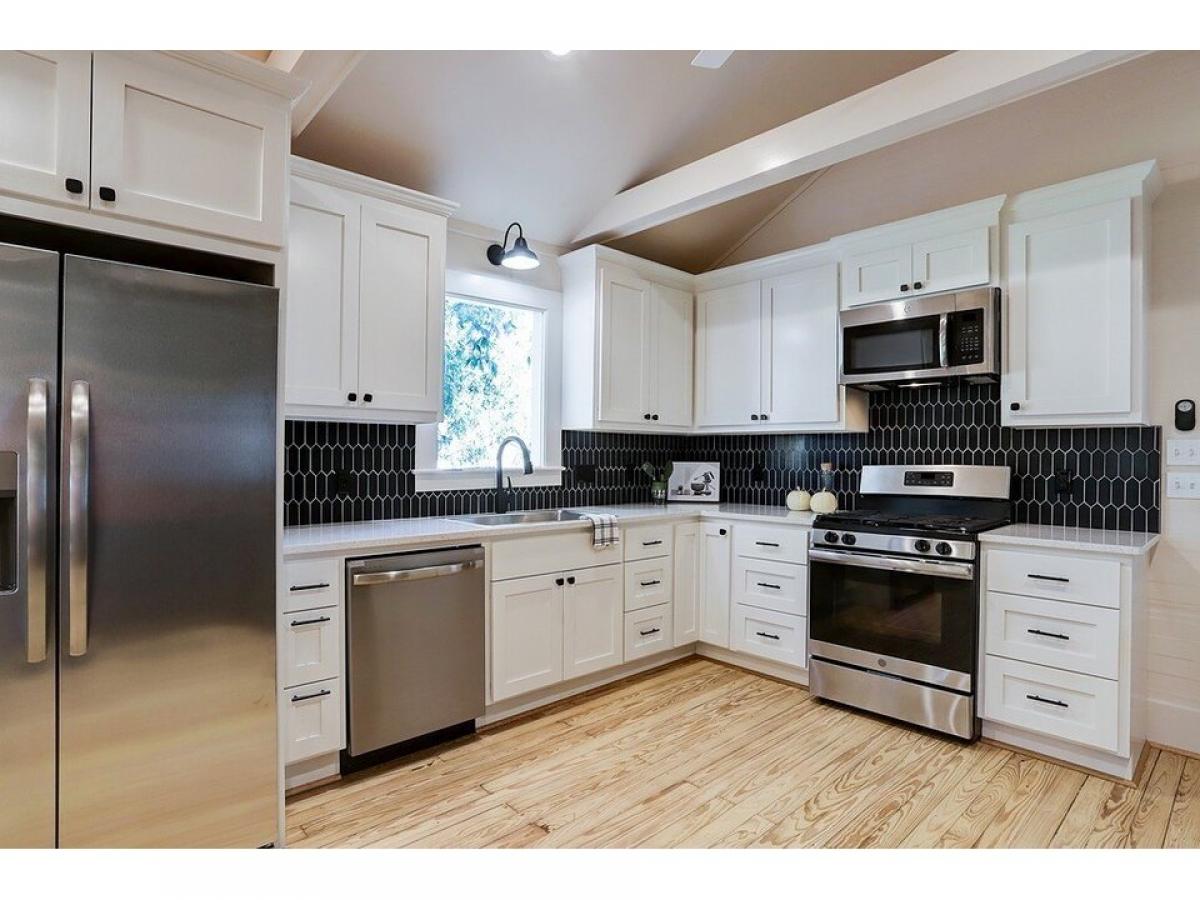 PRICE REDUCED - FINANCING AVAILABLE Charming Country Cottage is just two blocks from the Historic Town Square. MAIN HOUSE is a two-bedroom one bath Residence of 1276 sq ft and has been completely remodeled. A vaulted, beamed ceiling was added throughout first floor, the Kitchen has new cabinets, quartz counter tops, and a built-in Wall Pantry. New refrigerator, dishwasher, gas range/electric oven, washer and dryer are all included. SECOND Building is a one bedroom, one bath Guest Apartment, with large outdoor patio deck area for entertaining. Nice views of pastureland and woods. New gravel drive, newly sodded front yard with irrigation system. Best Value in Fayetteville.