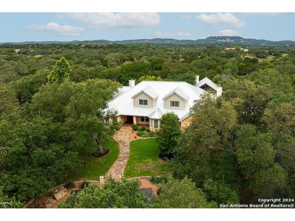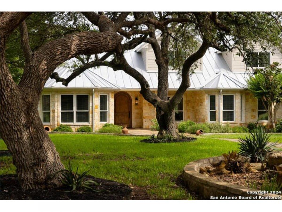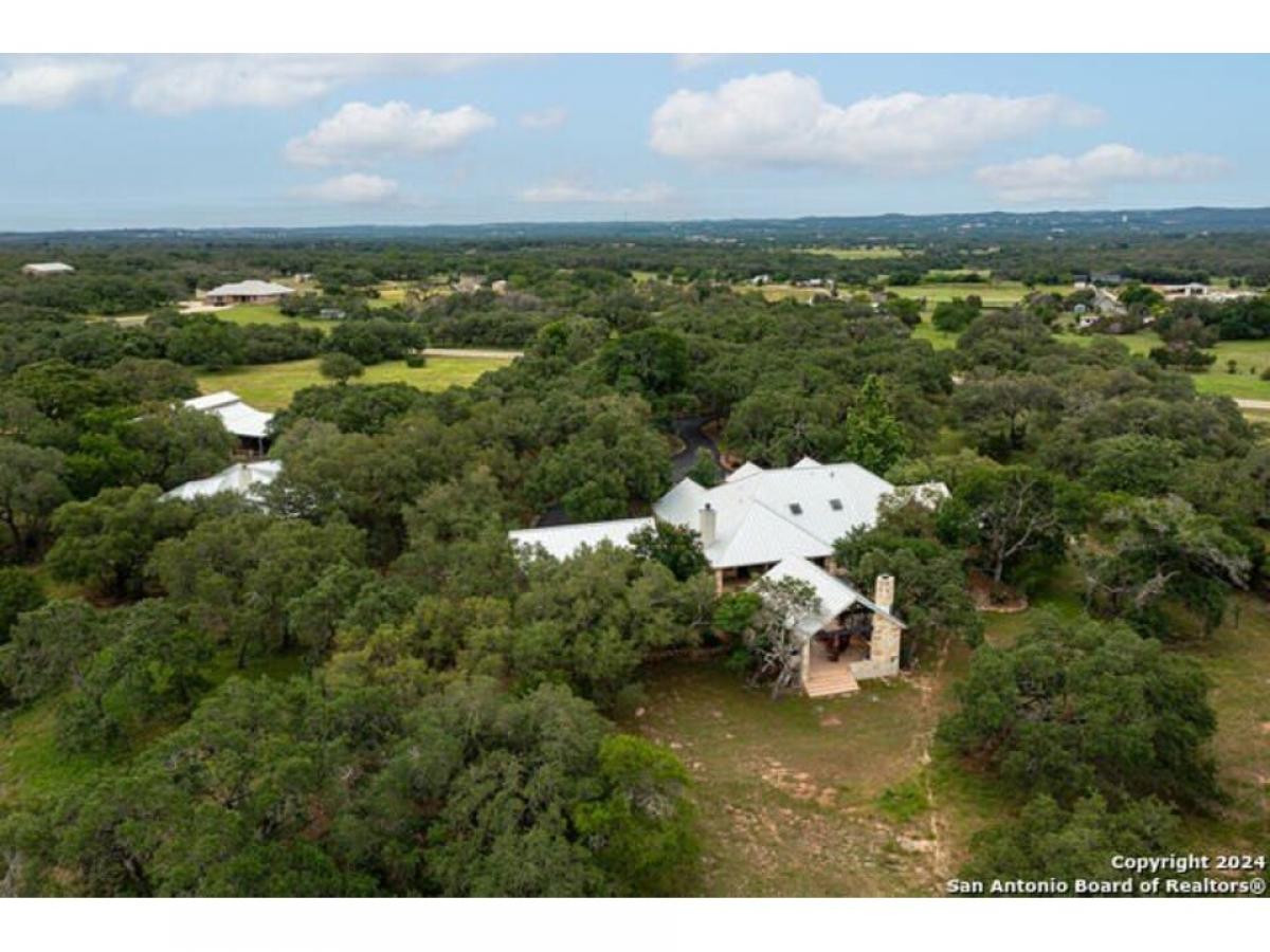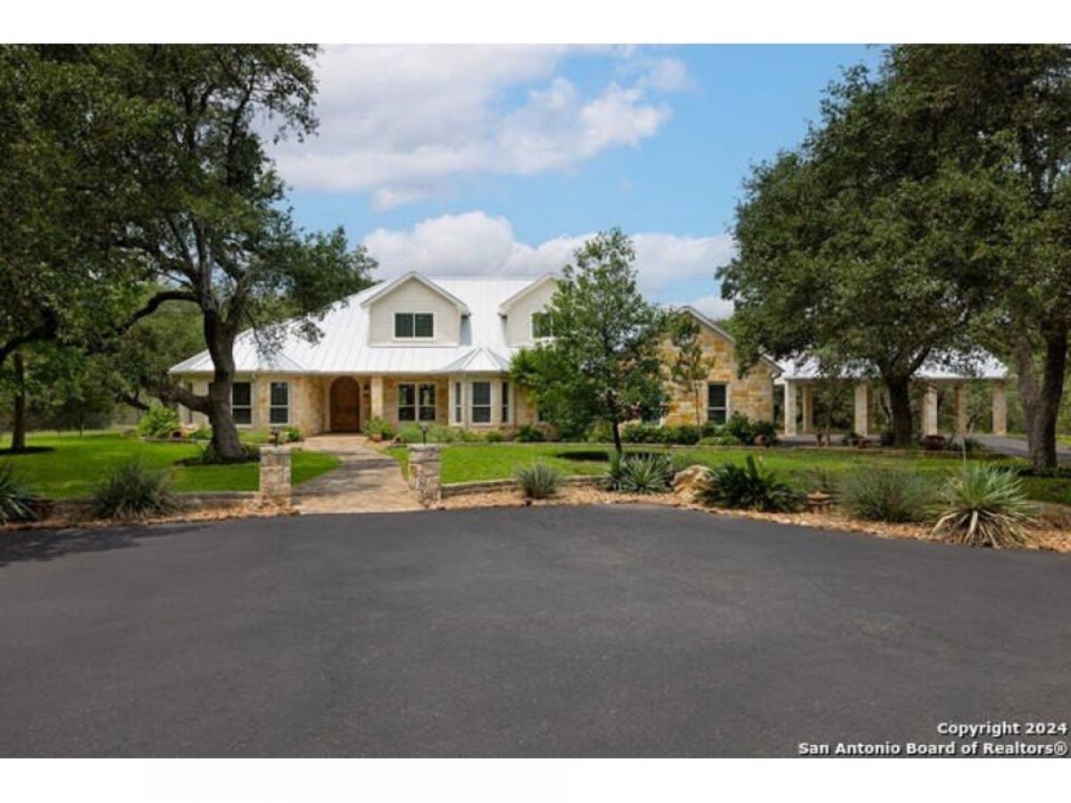 Main House 4017 SF; 4/3/1. Guest House 1703SF; 2/1 with sunroom. Barn 3280SF; workshop; equipment storage; equipped with electric and water; turnouts and access to fenced and cross fenced paddocks. Cabana with masonry fireplace, large granite countertop, and two mini fridges. 17.74 acres of private property with several majestic mature live oaks complementing wildlife exempted acreage. Intimate community with limited ownership makes for great privacy and convenience. The Historic Steel Ranch has the original Homestead and barn located nearby. Meticulously kept, conveniently located just minutes from downtown Boerne. As you enter the 4ft arched alder front door, you are greeted by a beautiful barrel vault foyer, open to a vaulted living room as well as lovely dining room and beautiful kitchen. Every surface in the home has been updated with built-in storage, pristine finishes and elaborate touches including all light fixtures throughout the entire home being adapted to LED. Tons of natural light complements this beautiful home, including wonderful skylights with tons of light flooding through these special spaces. Special game room with unique axis hide print carpeting and extra family living space right off the kitchen. Wide open floor plan with recently installed wide plank hickory flooring throughout as well as great dark beams complementing the ceilings. The wonderful potbelly wood-burning stove in the main living space is a warm touch in this open floor plan. Wine refrigerator and custom cabinetry built in. The oversize kitchen would be enjoyed by any culinary artist. A large island makes for a great workspace. The island quartzite countertop waterfalling on both ends is stunning. Recently updated stainless steel appliances, offering all electric and induction stoves, pot filler for convenient cooking. Stainless steel refrigerator will remain. Separate office space complete with tons of built-in custom cabinetry. Primary suite on the main floor with excessive space for sitting area, opens out onto a private deck with scenic views of wildlife. Recently updated, beautiful primary suite bathroom includes elaborate shower with double heads and standalone tub includes exquisite fixtures, double vanities with waterfall edge counters, coffee bar, and custom Zellige tile. New oversize closet with pull down third row rods, custom finishes, built-in jewelry cabinet. All guest bedrooms have beautiful walk-in closets and updated bathrooms. Upstairs, you are greeted by a grand bonus area that will serve wonderfully for entertainment, work out room or secondary family room or media. Two bedrooms with fabulous views off this space have wood floors, walk-in closets, and tons of storage. Outstanding outdoor living spaces, including Cabana with Masonry fireplace, large Granite countertop, includes two mini fridges that will remain. The perfectly private acreage includes a wonderful Koi Pond and wildlife exemption. Guesthouse with 2 bedrooms, features an open floor plan with hickory custom cabinets in the kitchen as well as flanking the living room fireplace. The sunroom off the living room and kitchen brings the outdoors in. Main House Special Features include: Equipped with Sono#039;s sound system; Central vac system; Separate septic systems for main and guest house; Recently updated all metal roofing on all the buildings including the barn; Three new HVAC units in the main home; Blinds and covering throughout home with beautiful custom cased windows; Well, has 2000-gallon water storage; Recently replaced submersible and booster pumps; Oversized two car garage, painted floor, built-in cabinetry; Three-car carport; Guesthouse Special Features include: Laundry room off the closet; Central vac; Granite countertops; Vaulted tongue and groove ceiling in living room; Porcelain tile flooring; Carport, providing covered parking for your guests. Do not miss the amazing listing video located in the Virtual Tour section.