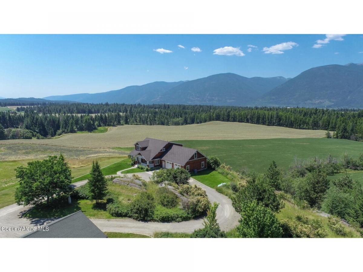 PICTURESQUE 84.87A RANCH, BORDERED BY USFS, IN THE HEART OF THE N IDAHO PANHANDLE. Atop acres of rolling farmland; currently sewn in Alfalfa w/ a beautiful tree-lined drive and the scenic Kootenai Valley & Selkirk Mtns as its backdrop, rests this exquisite 3101sf 2BD 2.5BA custom home. Once dubbed Country Living's Home Of The Year, this immaculate home features engineered Red Oak flrs, Gourmet Kit w/ White Oak cabinets, Formal Living Rm w/ tiled FP (Propane), Fam Rm/Informal LR, Formal Dining, private M suite w/ dble vanity, tiled W/I Shower & clawfoot tub, abundant wood accents top to bottom, wood clad windows, full length covered front porch, sizable covered rear deck, att 2 car Gar w/ bonus room above & so much more. Plus a 28x42 Shop w/ 616sf 1BD 1BA apartment, 72x38 heated 8 stall barn w/ att 60x48 riding arena (could be used as shop), a 40x60 pole bldg/hay storage + it's fenced & cross fenced; ready for horses or other farm animals.