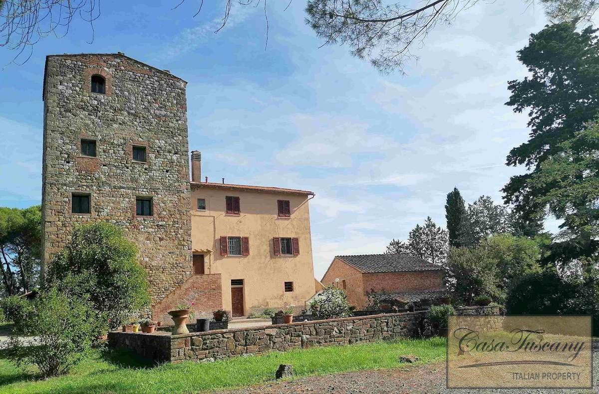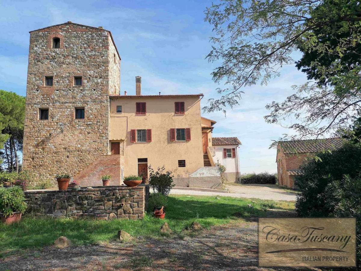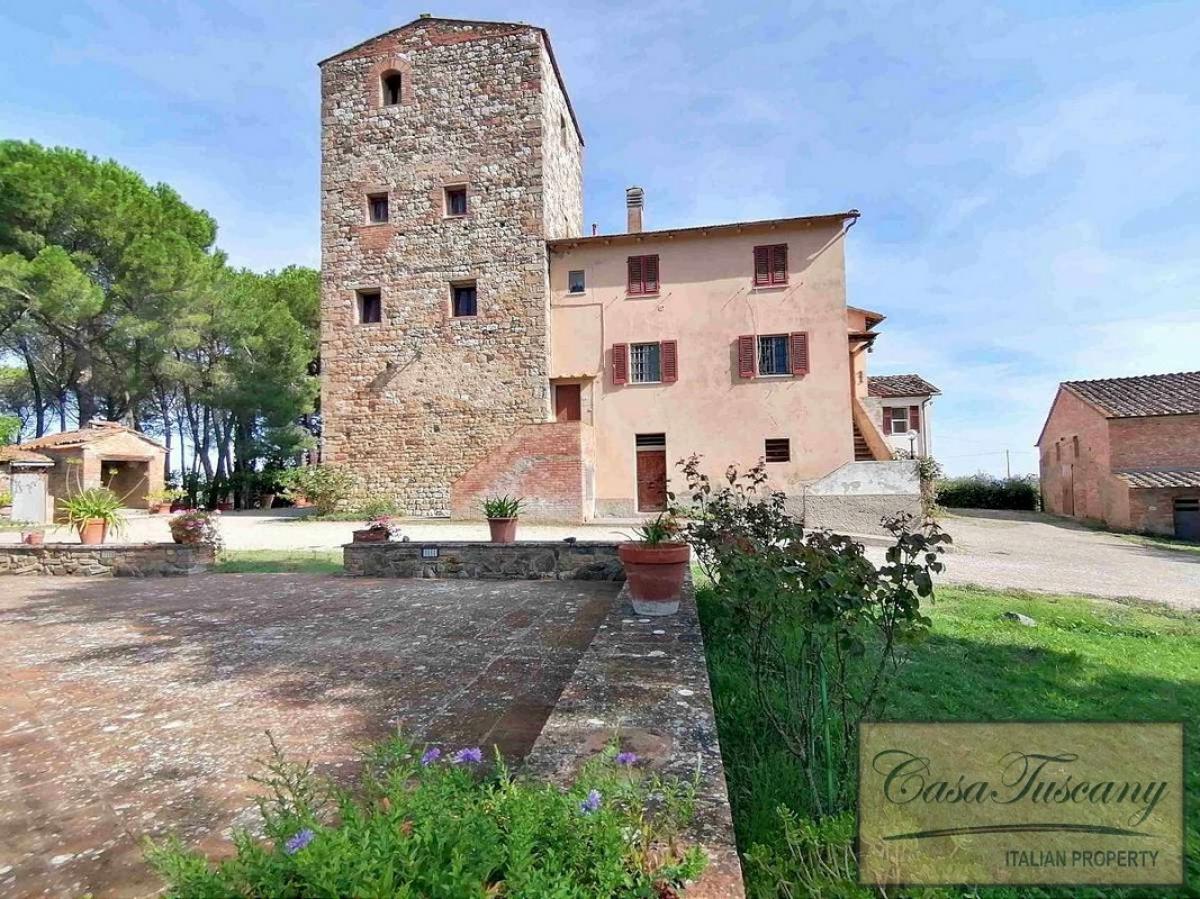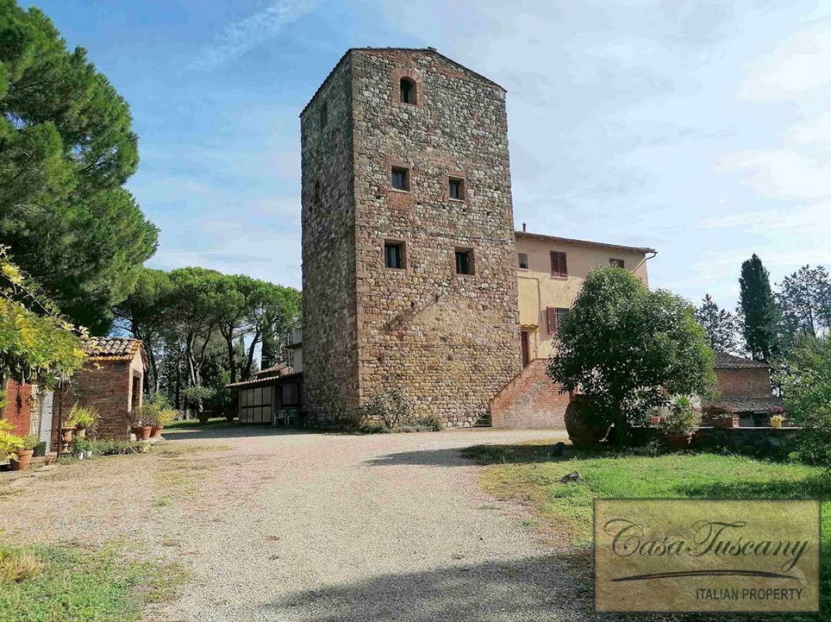 The main building, characterized by the typical watchtower, has an area of about 500 m2 in addition to the cellar on the ground floor for a further 200 m2 and enjoys splendid panoramic views over the countryside and the medieval city of San Gimignano.