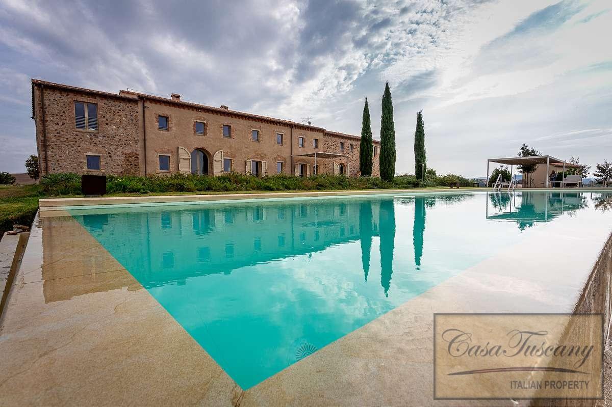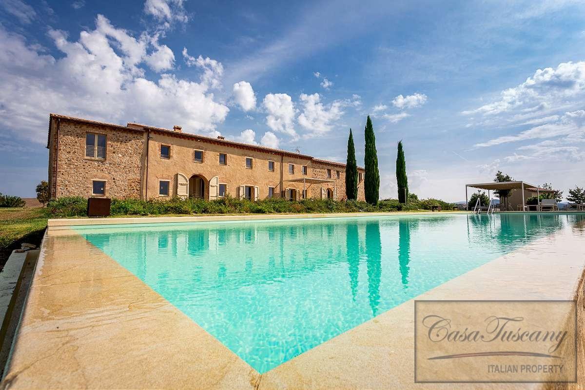 Just 20 minutes from the beautiful Etruscan hilltop town of Volterra and 1 hour from the coast, this prestigious property is surrounded by unspoiled countryside, in a hillside position with a dominant view, in a place where time seems to have stopped.