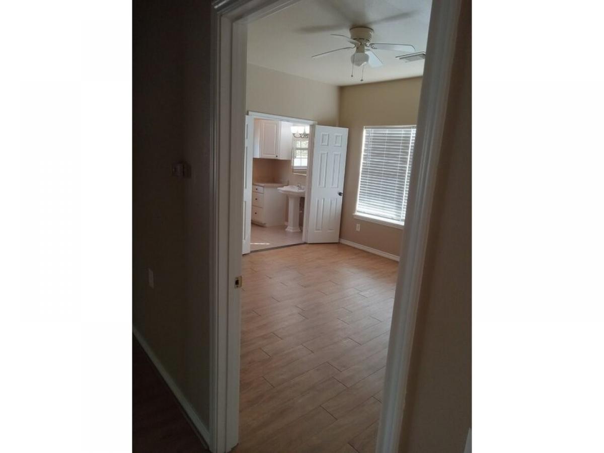 This property is a charming duplex featuring 9-foot ceilings, a mix of wood and tile flooring, ceiling fans, a kitchen pantry, and a breakfast bar. It includes washer and dryer connections for added convenience. The primary bathroom boasts a walk-in shower. The home is designed with oversized doors, and the light switches are installed lower than standard height for accessibility. Both front and back doors are present, and the property is fully fenced for privacy. This is an all-electric property, conveniently located near I-45, shopping centers, and schools. Lawn care is provided by the owner, while tenants are responsible for electricity and city utilities. A one-year lease is required. Please note, pets are not permitted, and smoking is strictly prohibited on the premises.