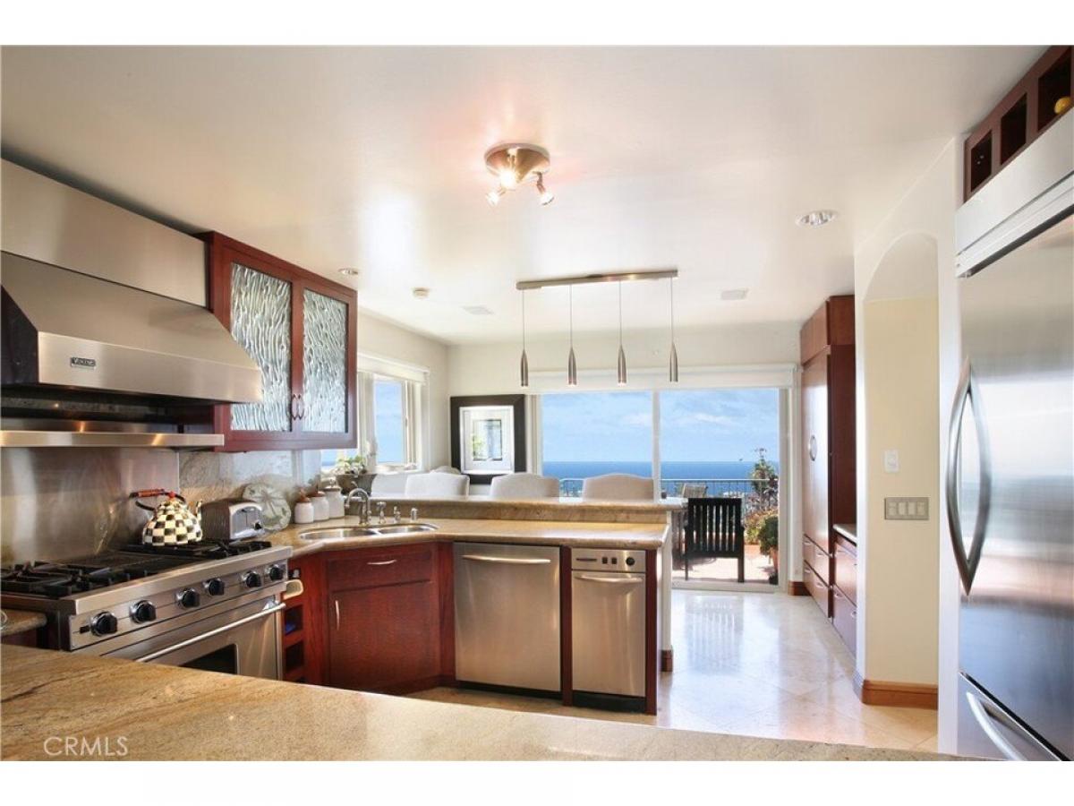 Breathtaking Ocean, Catalina and City Light views from this beautifully designed newer three bedroom, two bath home. Mediterranean in style with a large ocean view primary suite upstairs. The primary suite has its own large veranda and takes up the whole top floor. Gourmet kitchen with ocean views, breakfast bar and dining room. Limestone flooring throughout the entertainment areas and new, neutral wall to wall carpet in the bedrooms. The living room has vaulted ceilings and large fireplace. Two car garage with automatic opener and one off street parking space. Large private deck in the rear of the home. Newley painted and carpeted, this home is perfect and in move-in condition for the next lucky occupant... Note: This home can be combined with an additional guest quarter unit for an additional $2500. a month.