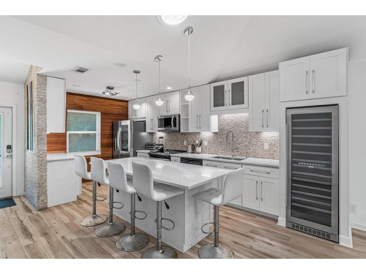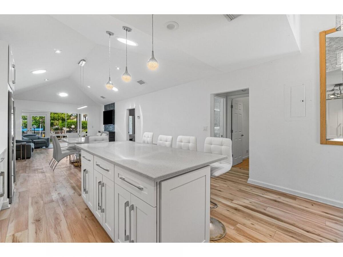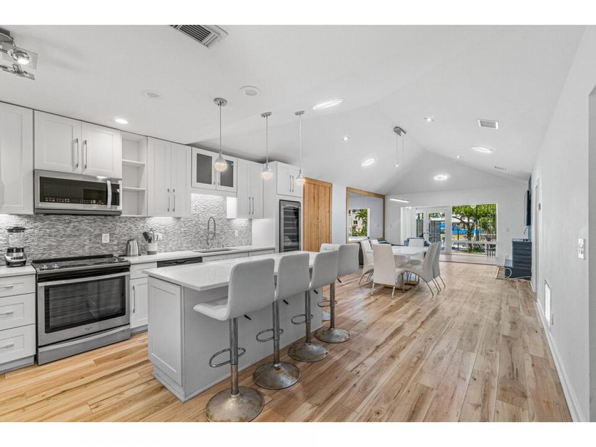 This inviting waterfront villa is now available for annual rent. Open floor plan living with updated kitchen that offers a large island with bar seating, stainless steel appliances and a full size wine cooler. Sleek and modern in style, this renovated villa is ready for you to call it home! Backyard offers large open patio with seating and lounging space and beautiful water views. Dock space available for additional charge. 10lb dogs or less allowed.