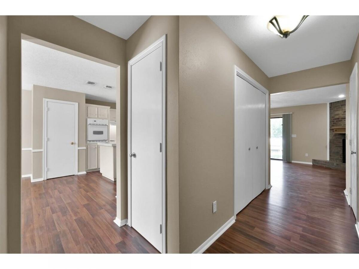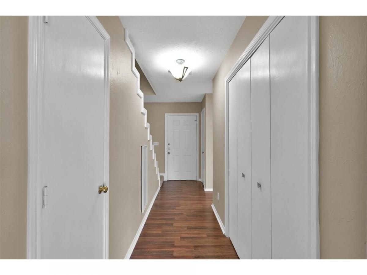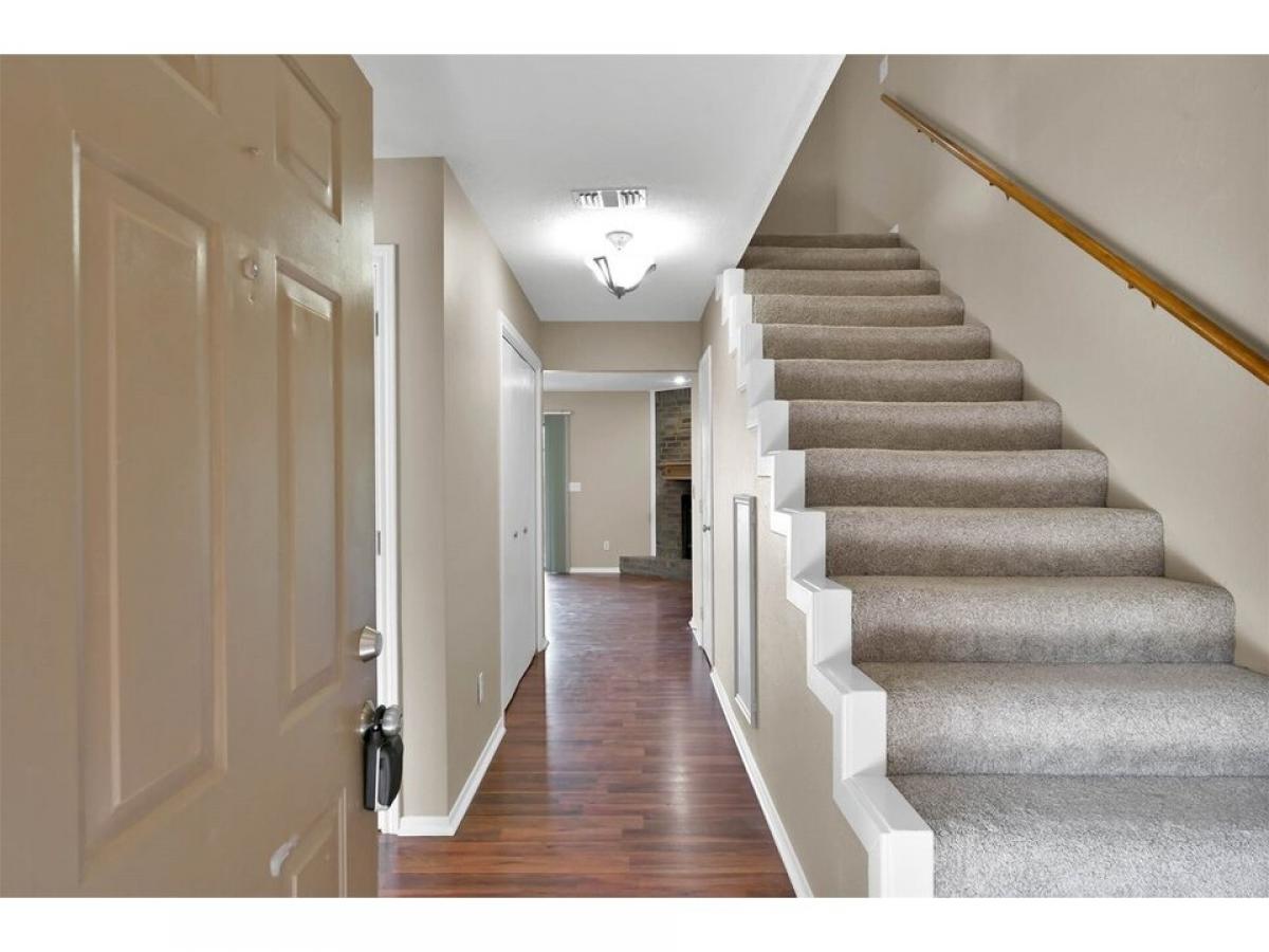 Great waterfront home with boat slip. 2 bedroom, 2.5 bath home has laminate wood flooring throughout first floor. Kitchen has loads of cabinets for storage, breakfast bar and nice lake views. Wood burning fireplace in living room. Large 16x11 covered patio and yard with wrought iron fence. Both bedrooms are up with balcony access from the primary bedroom. Half bath downstairs. Refrigerator, washer, and dryer included, located on first floor. Single car garage, gutters and additional parking.