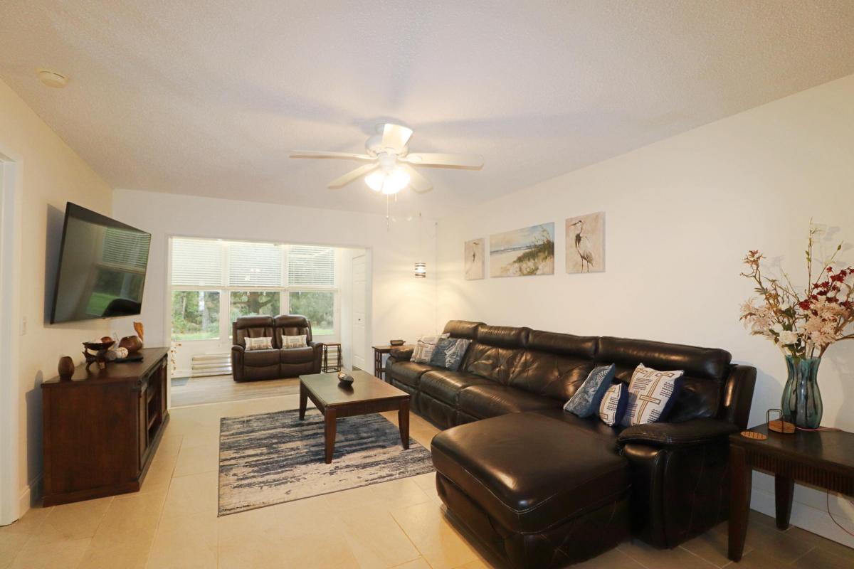 ***1 PERSON MUST BE 55+ & NEED TO HAVE A CREDIT SCORE OF 700+ TO LIVE IN SEC 3 HIGH POINT*** Well maintained furnished 2/2 interior 1st floor condo w/FL RM opened & is part of living space. Updated kitchen light cabinets, quartz counters, stainless appliances, tiled floors throughout, 6'' base, custom mirrored wall in dining area, extra storage cabinets in master bedroom, + newer tiled tub & shower areas & bath vanities. Plantation shutters, + impact windows. Open Patio to enjoy the great outdoors & private green space/canal. Included w/monthly rent is water, sewer, TV, internet, trash pick-up, 24-hour manned gate, lawn care, All amenities & social activities. Tenant only pays electric utility. Exceptional condo for the monthly rental fee. Available for occupancy 2-7-2026.