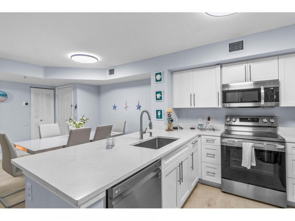 FURNISHED ANNUAL/SEASONAL RENTAL. Nestled along the Intracoastal Waterway, this 2-bedroom, 2-bathroom condo offers an ideal escape with its prime location and well-designed features. The unit presents a seamless blend of modern elegance and coastal charm, providing a comfortable and inviting retreat for those looking to enjoy the beauty of the waterfront. Upon entering the condo, guests are welcomed into a tastefully decorated living space that maximizes natural light, creating an airy and pleasant atmosphere. The open-concept layout enhances the sense of space, allowing for easy movement between the living area and the fully equipped kitchen. The kitchen, adorned with sleek countertops and stainless steel appliances, provides a stylish and functional space for preparing meals.